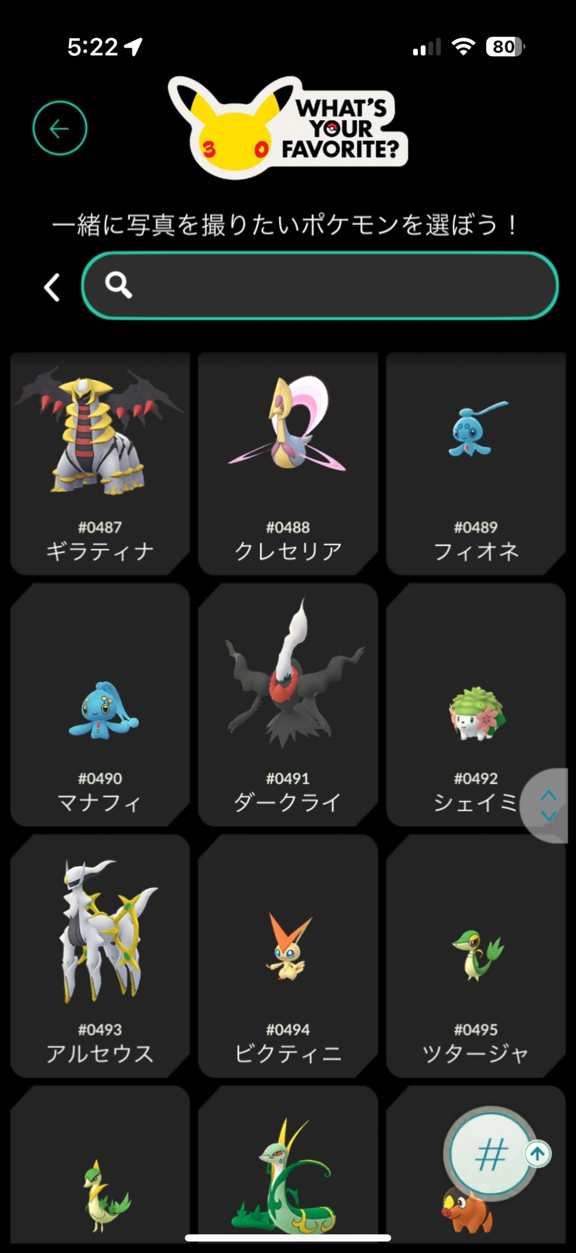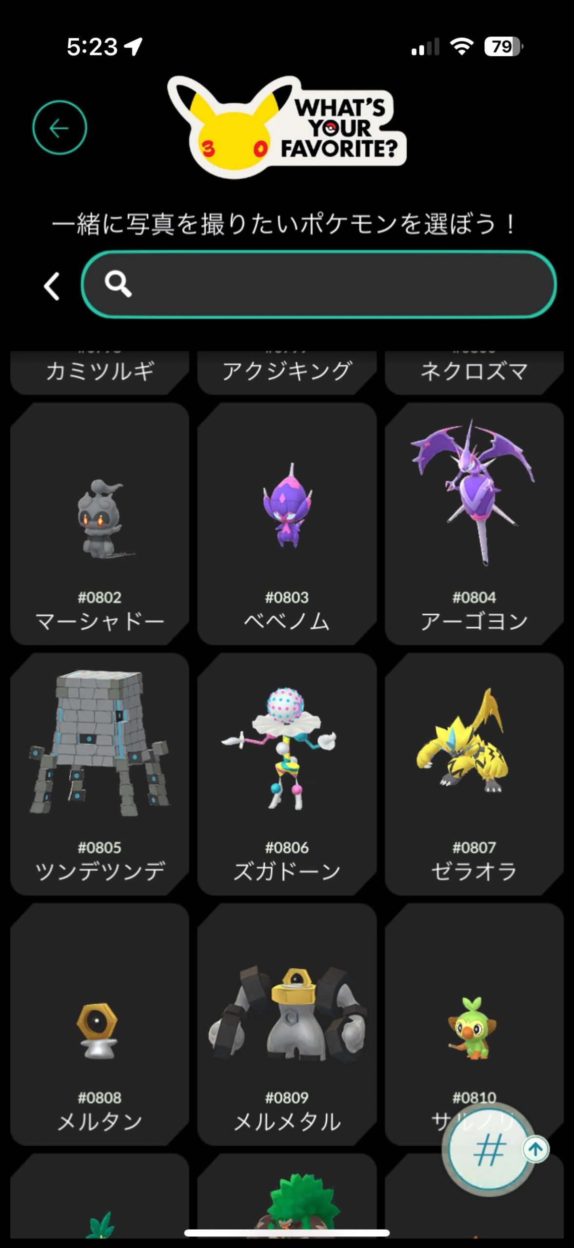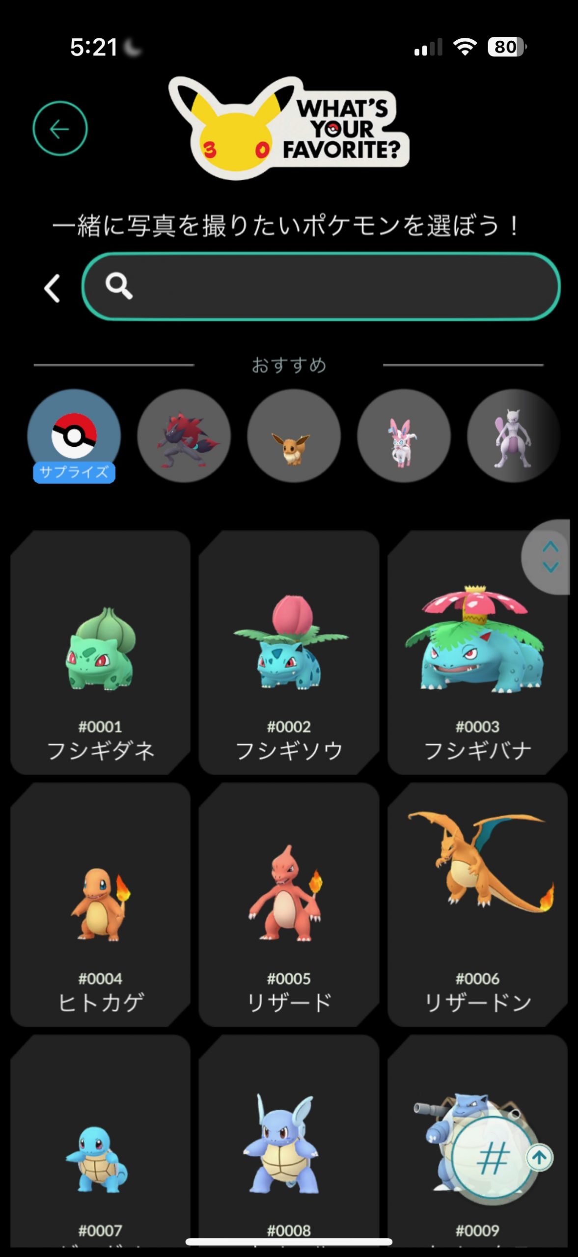 ▲あとは、撮影したいポケモンを選ぶだけ。