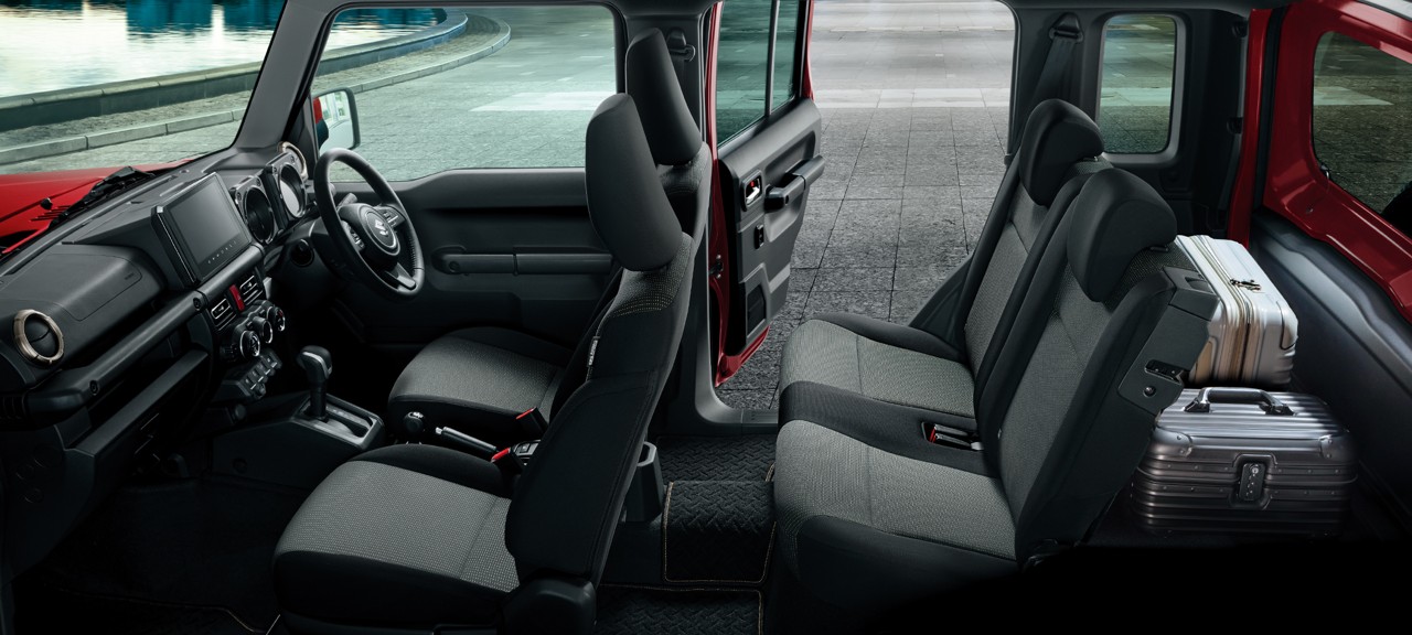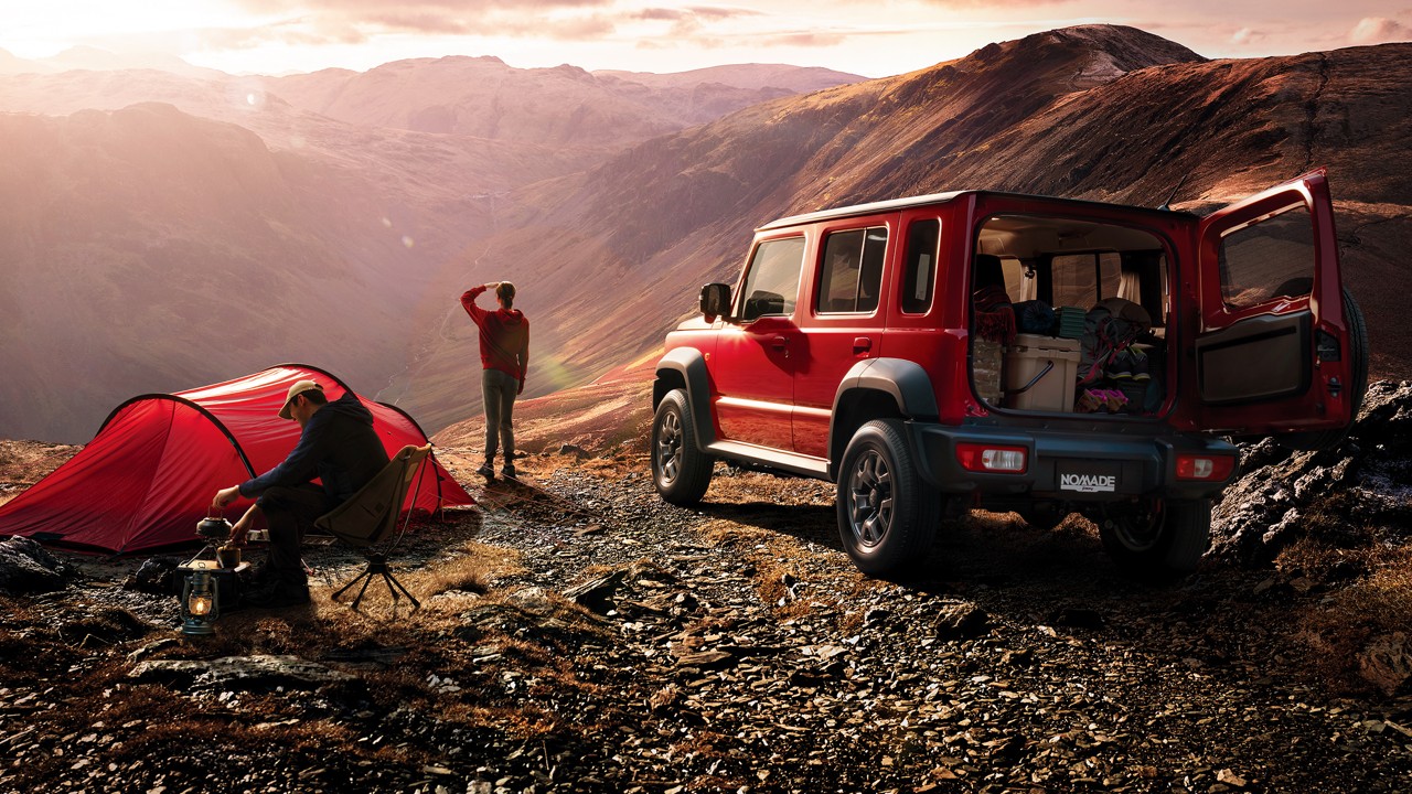 「本格的な悪路走破性を持つ5ドア コンパクトクロカン4×4」をコンセプトに、後部座席の居住性及び快適性向上を実現した4人乗りモデルのスズキ「ジムニー ノマド」。