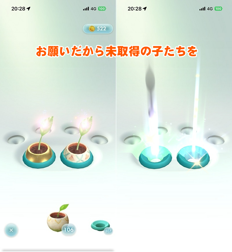 6個の苗から未取得の個体を3種類引き当てたのだから上出来なんだけど、赤赤と白白と続いたこの流れは本当に心が折れる。