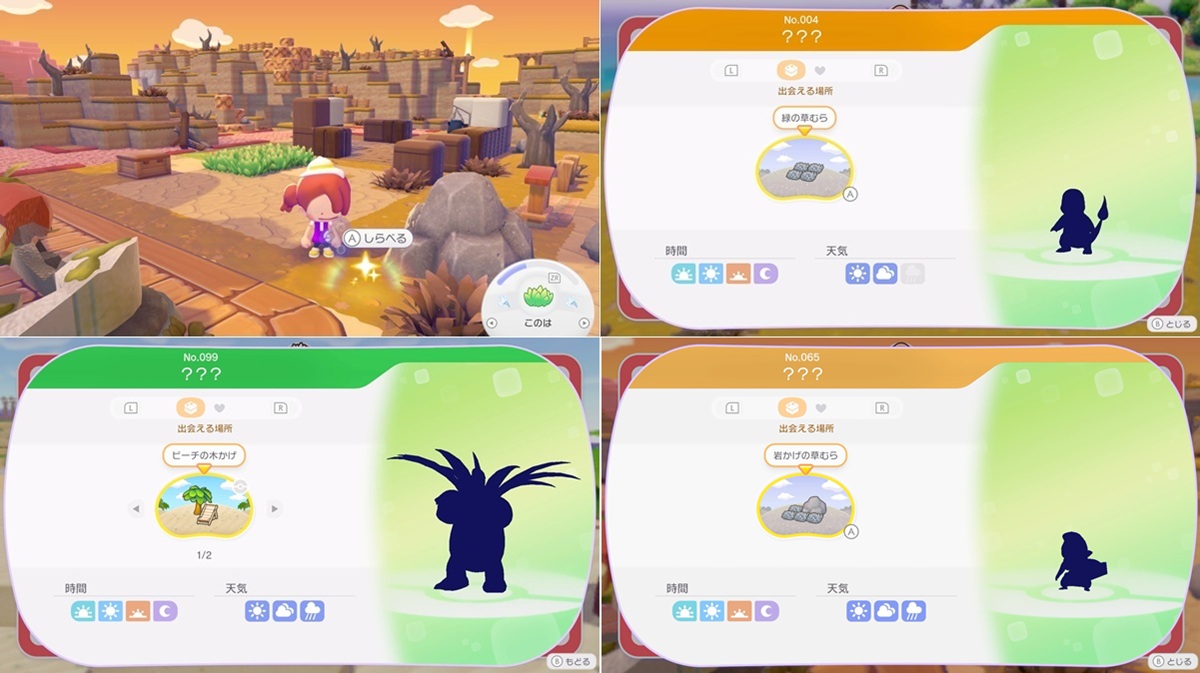 ▲生息地ずかんを参考に開拓。“くわしく”という項目には何をいくつ準備するのかも書かれている。