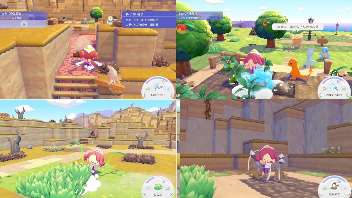 例えばフシギダネの“このは”で緑を増やしたり、ゼニガメの“みずでっぽう”を使えば、乾いた地面を潤すこともできちゃう。