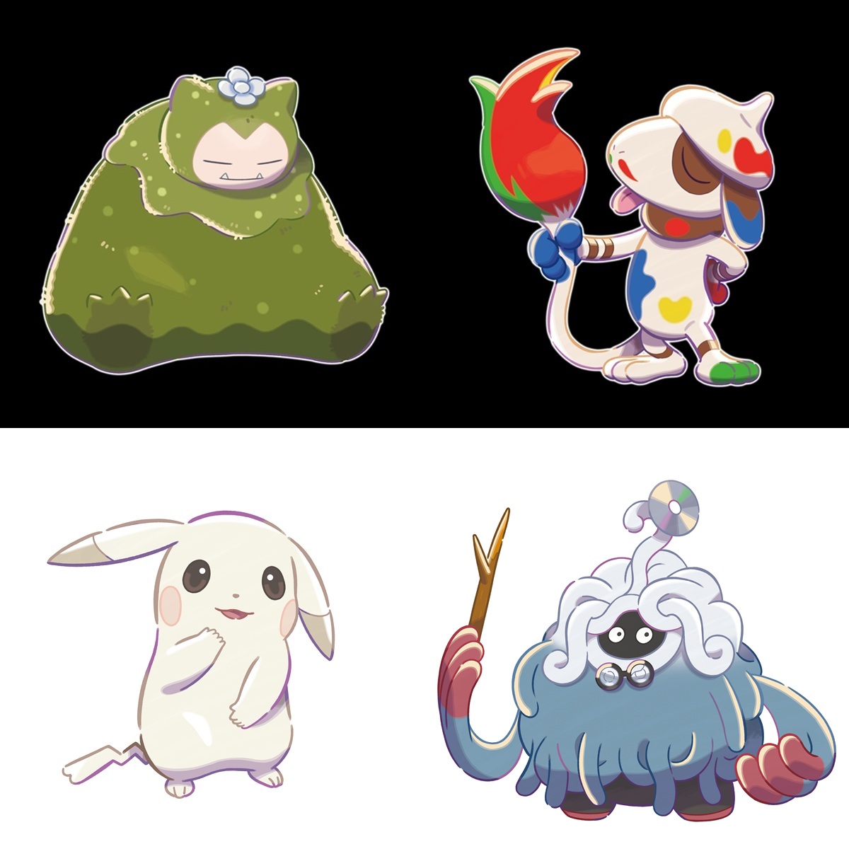 ▲こちらがその1部。カビゴンやドーブルたちがどうしてそんなすがたになったのか。なんだかその経緯が想像ができてしまう愛おしさ。どこかか弱そうなピカチュウ(うすいろ)もなんだかほっとけない。