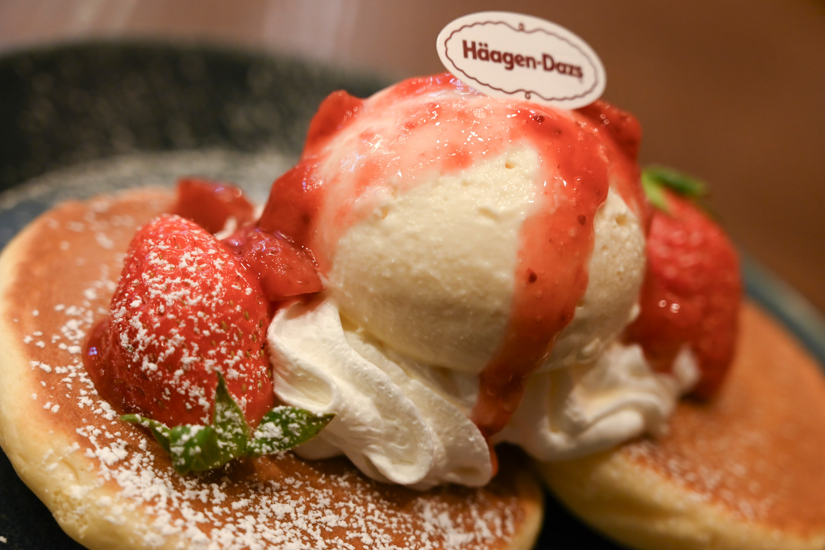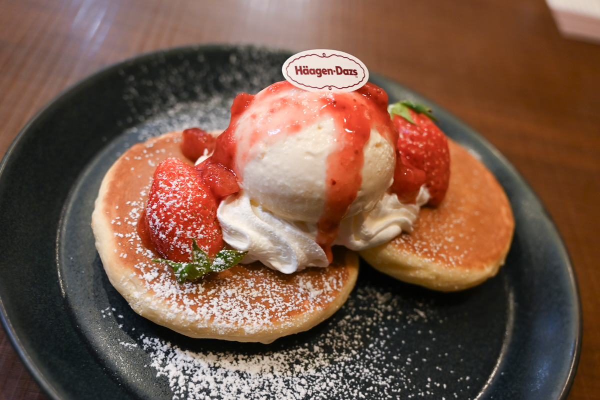 「苺のホットケーキ with ハーゲンダッツ」──主役のアイスといちごを引き立たせるホットケーキ