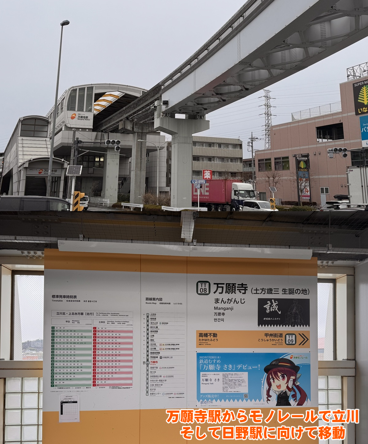 高幡不動尊で土方歳三の銅像を見た筆者は1度、高幡不動駅に戻り北口から「MD2026:日野、ふれあい橋」を開始。
