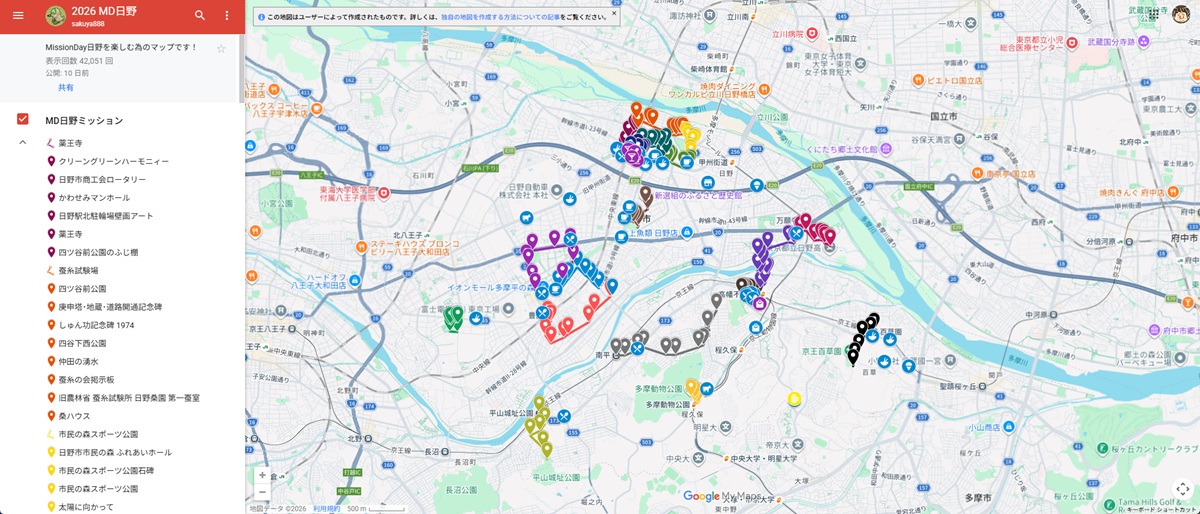 その後は、日野市内に点在するミッションを事前に決めたルートで散策。