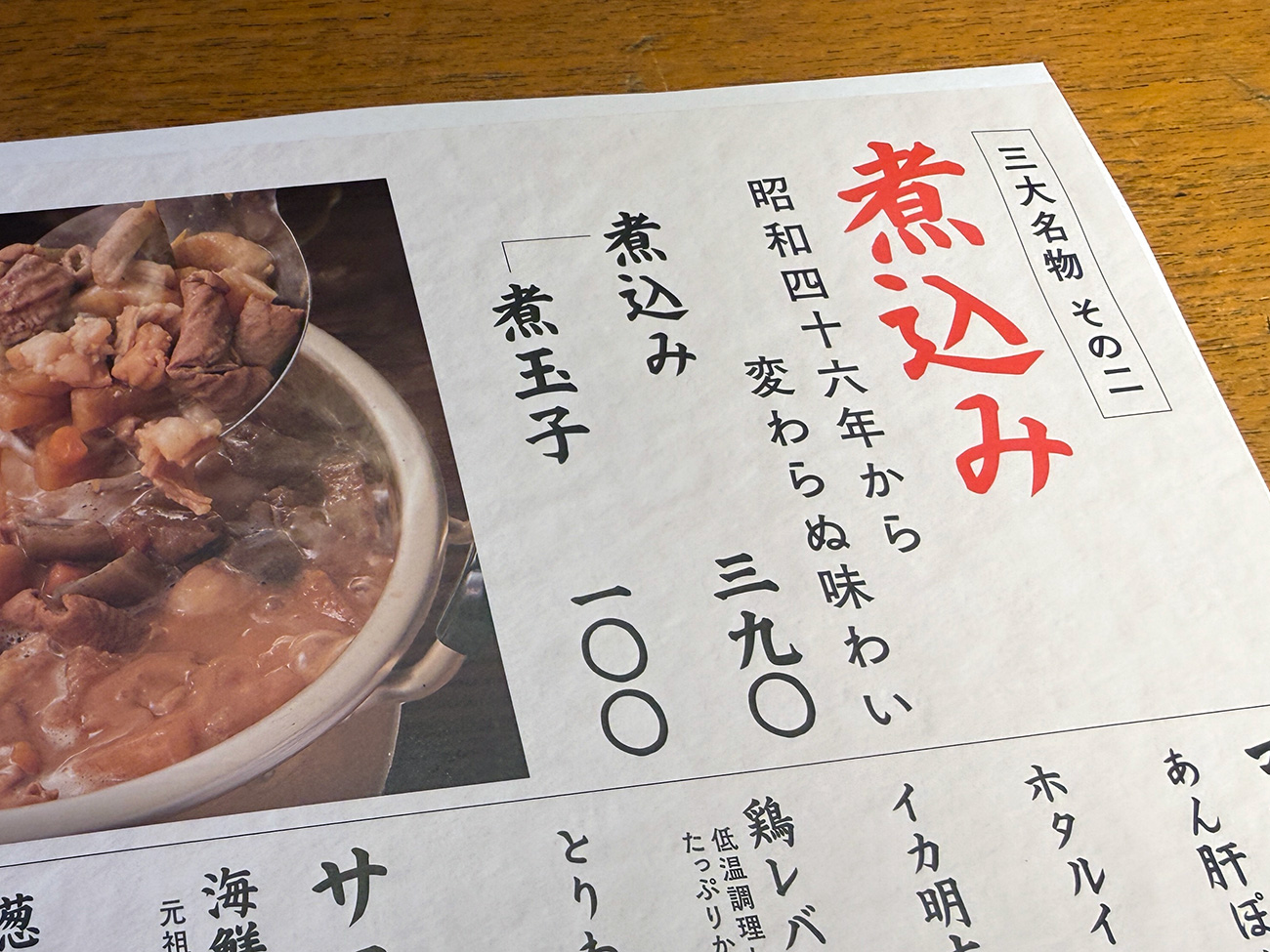例えば、名物の「煮込み」には煮卵を100円でトッピングできるんですけど、実はこれ煮卵単品でも100円で注文できるんですって。