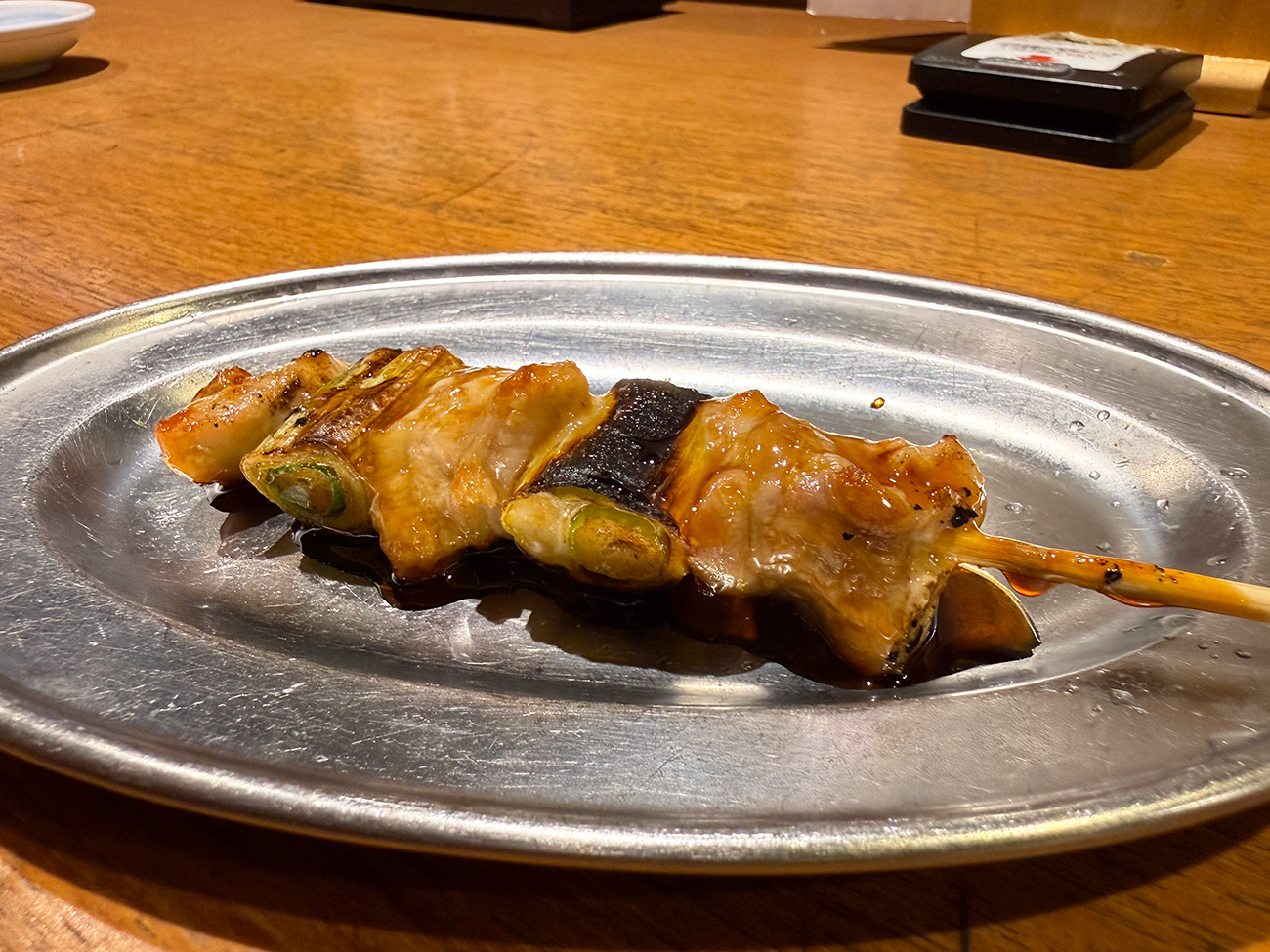 丁寧に焼き上げられた串はもも肉がやわらかく、香ばしいねぎがアクセント。甘すぎないタレもいいなあ。