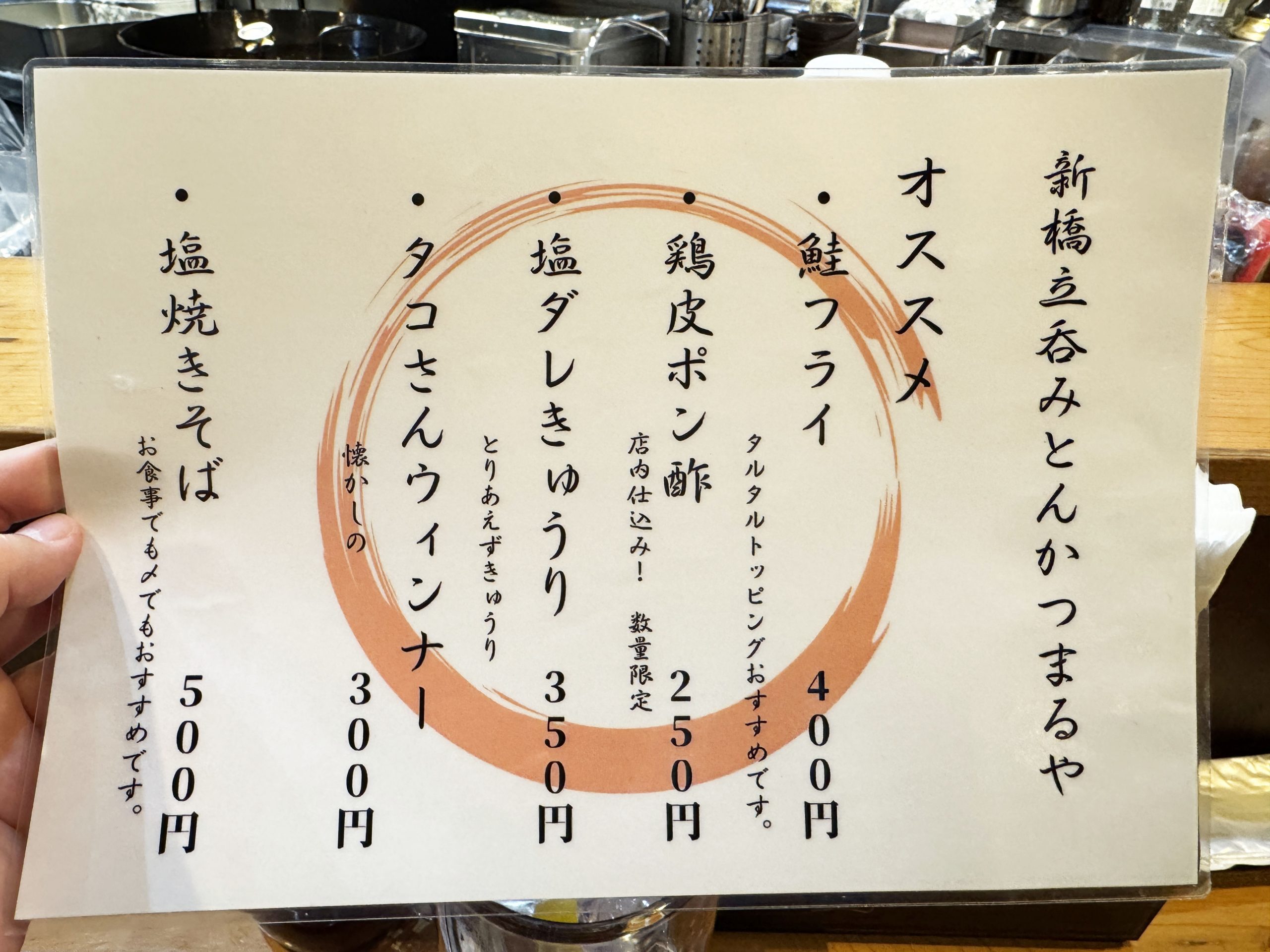 その店は「立呑み とんかつ まるや 新橋店」(東京都港区新橋2-20-15 新橋駅前ビル1号館1F)。