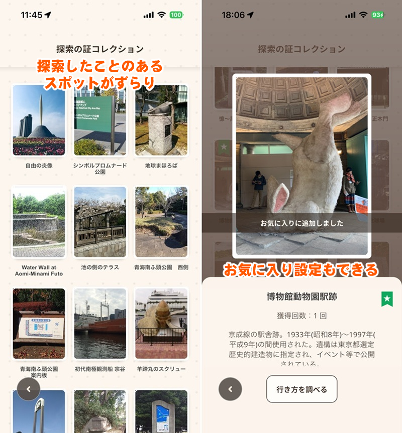 ・好きな探索の証をお気に入り登録できる