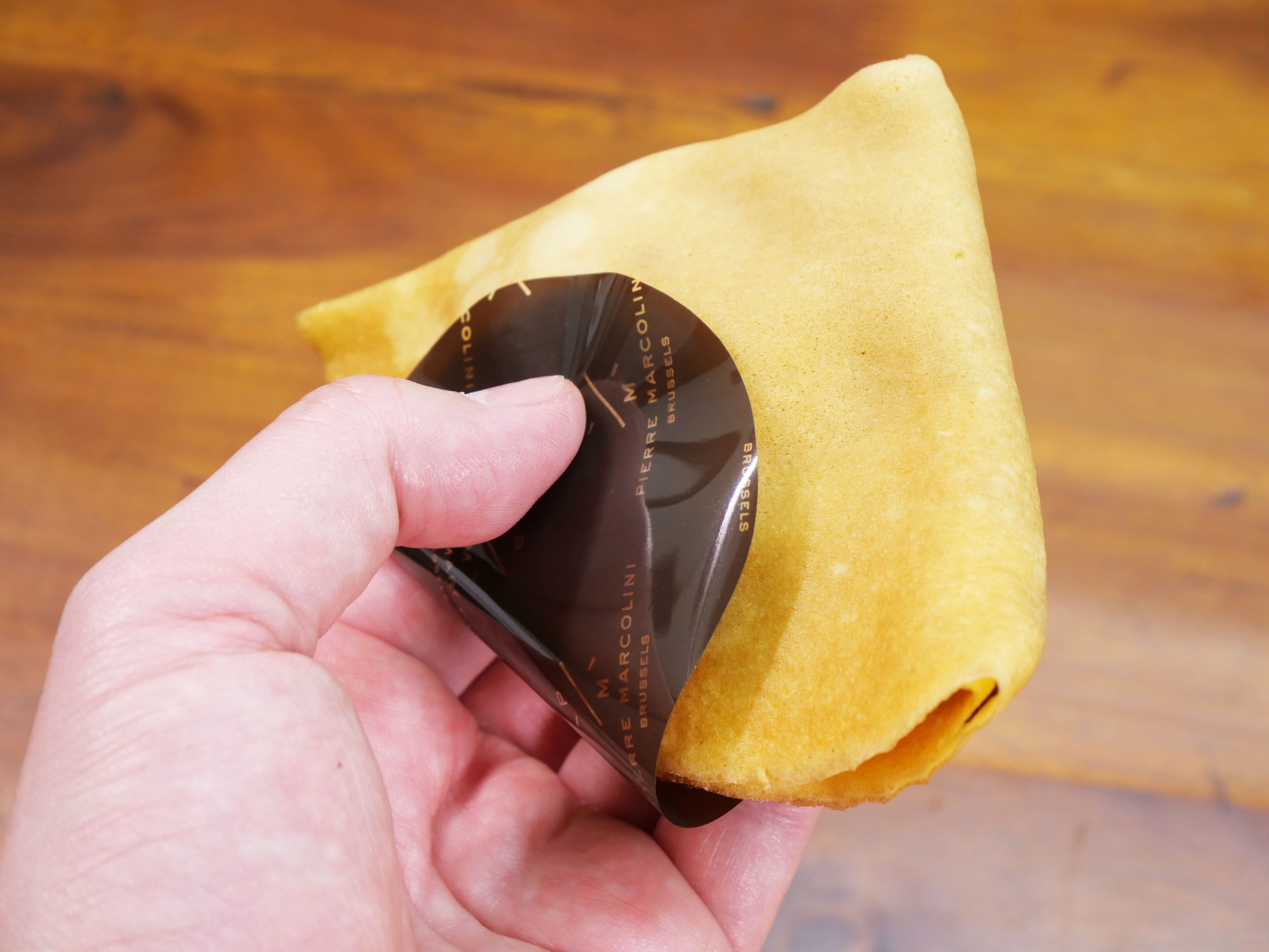 実際に購入してみたのだが、まず、その状態が素晴らしい。クレープに負担がかかって崩れないように、容器に余裕を持たせてガード。そして手を汚さずクレープをつかめるようにフィルムをまとっている。いつも以上にリッチ感と丁寧さを感じる仕上がりとなっている。