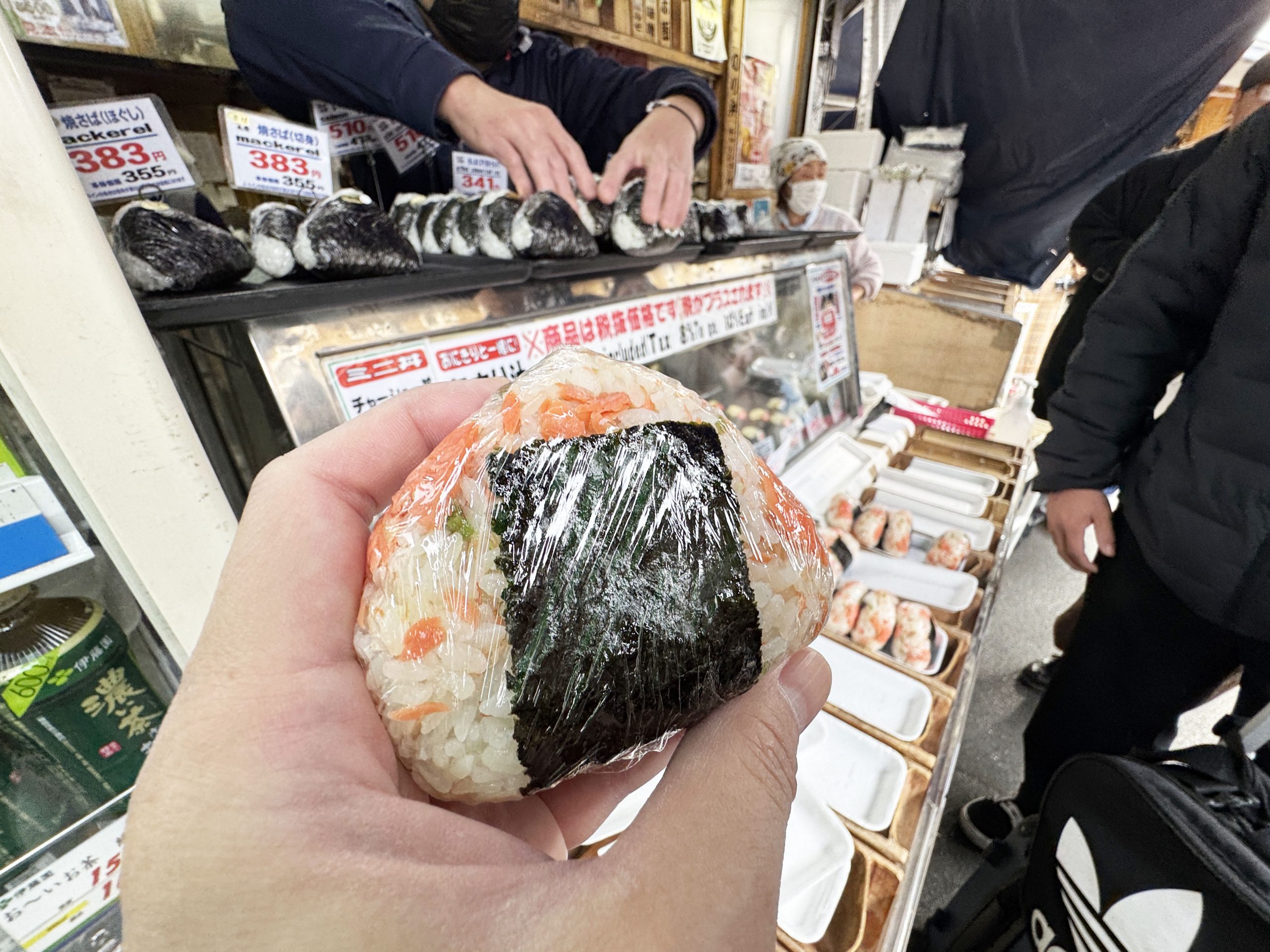 おにぎりひとつのサイズがやや大きいので、複数のテイストを買って、仲間や家族とシェアして食べ比べをするのも楽しい。あまりにもおいしすぎて行列ができることもあるが、たとえ並んででも買う価値がある名店といえよう。「丸豊」(東京都中央区築地4-9-9)