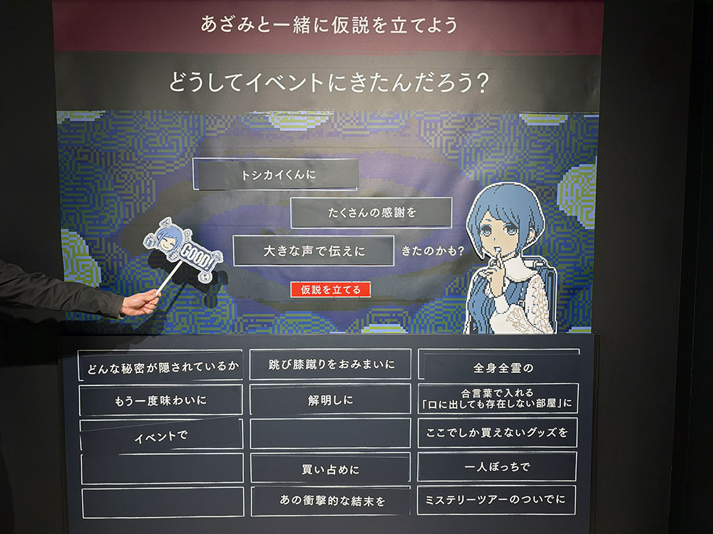「イベントで」「たくさんの感謝を」「もう一度味わいに」など、会場限定に用意された選択肢を使って、自分だけの仮説を組み立てられるようになっている。