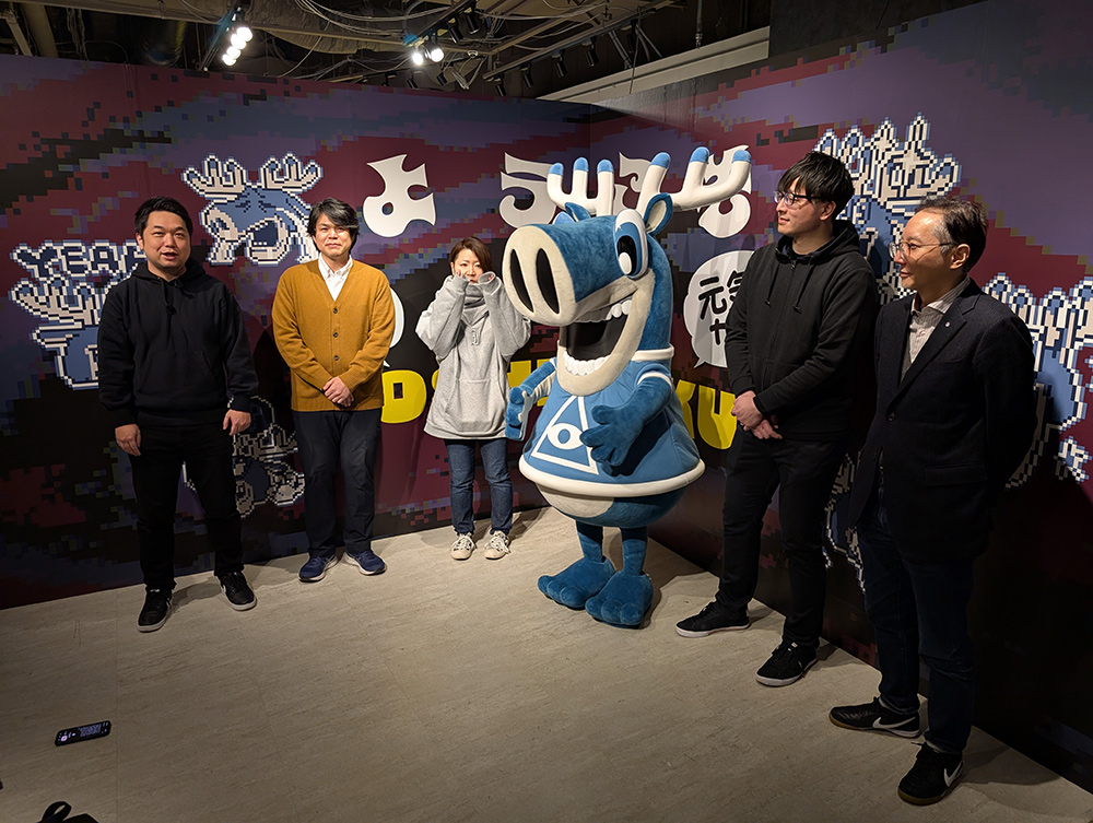 メディア向け内覧会当日は、開発チーム「墓場文庫」より、グラフィッカー兼デザイナーのハフハフ・おでーん氏、メインエンジニアのMOCHIKIN氏、イラストレーター兼シナリオライターのきっきゃわー氏、サウンドクリエイターのあだP氏、集英社ゲームズより林真理プロデューサーの5名が登場。一周年を迎えた現在の気持ち、ファンへのメッセージなどが語られた。