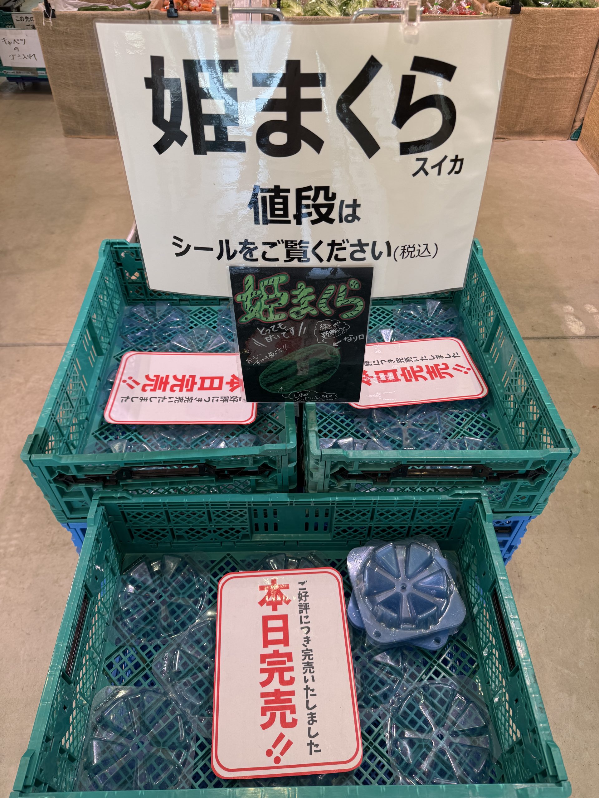 あまりにも人気がありすぎて、売り切れている野菜や果物もあります。