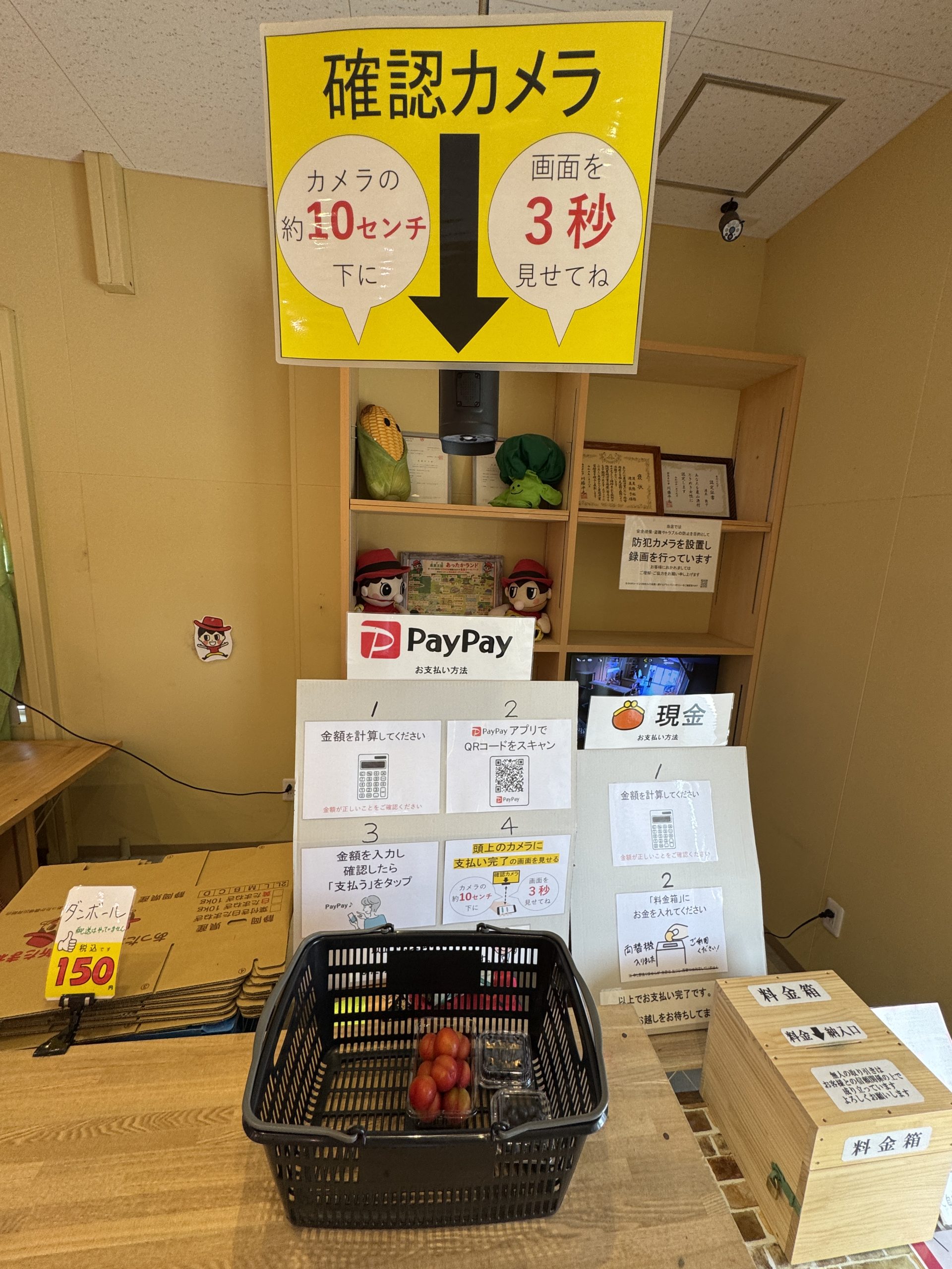 レジといっても、袋と料金入れとカメラがあるだけ。