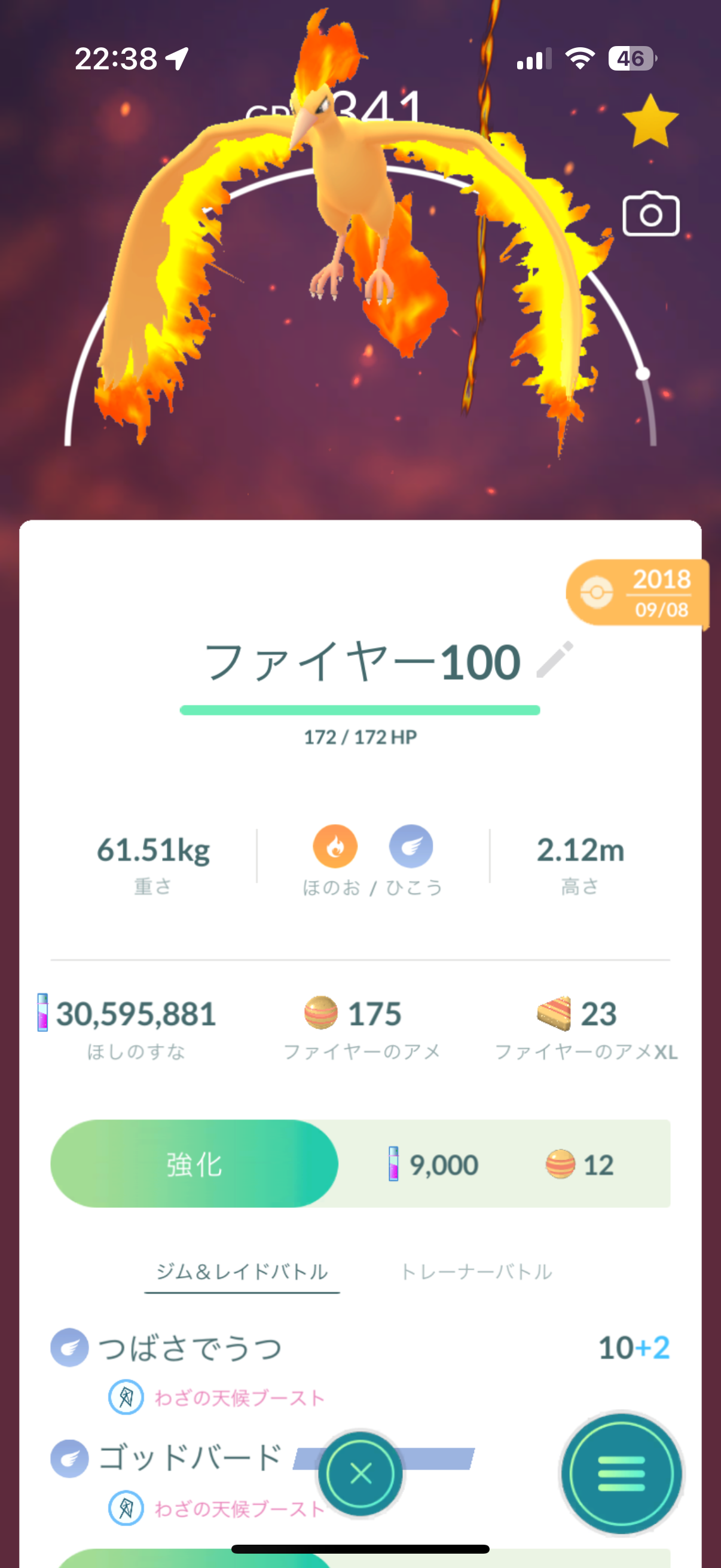 2月23日に伝説レイドバトルでゲットした“3鳥”は、以下の特別な技を習得しています。