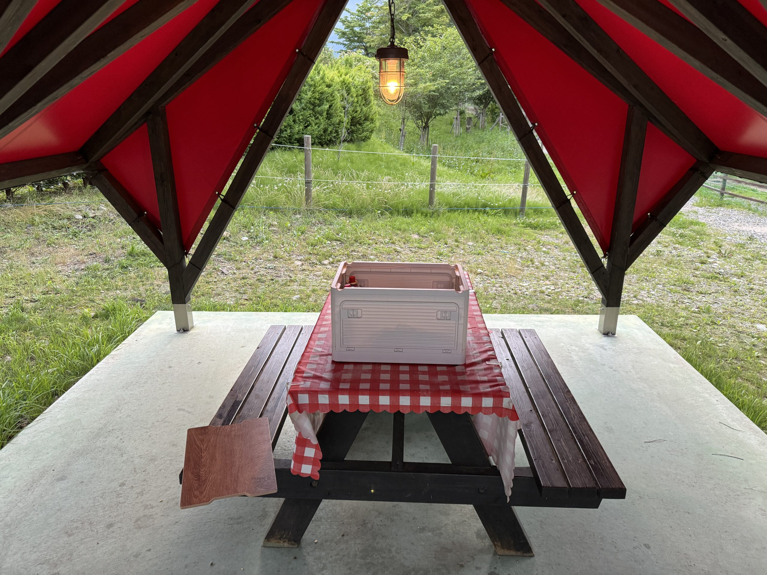 ディナーは、テント横の野外テーブルで食べます。