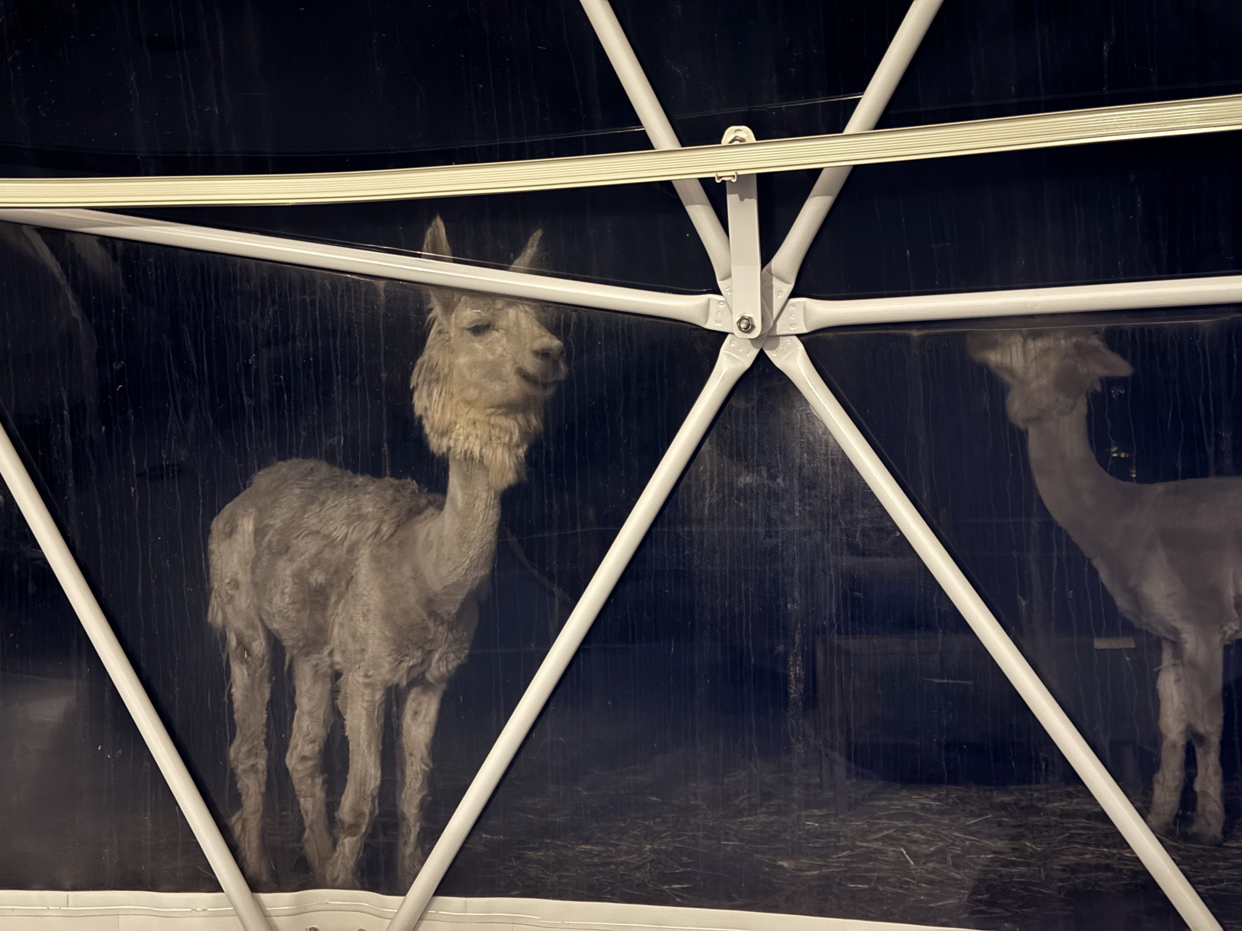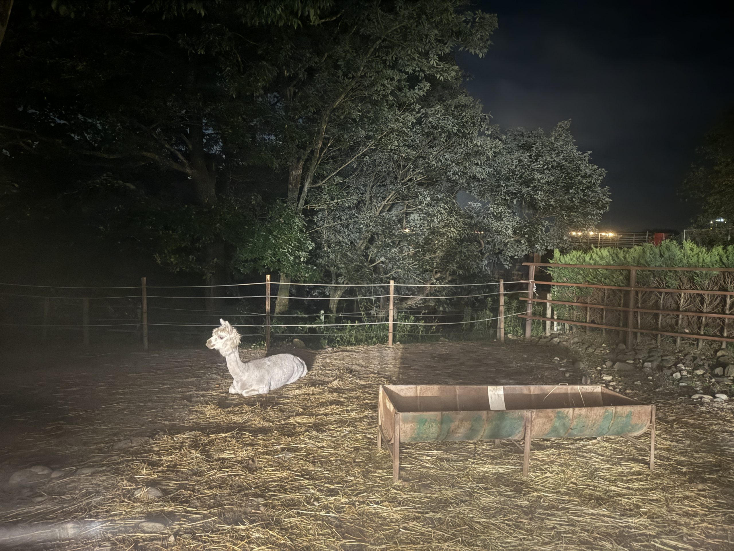 夜になっても、しっかりアルパカを眺められます。
