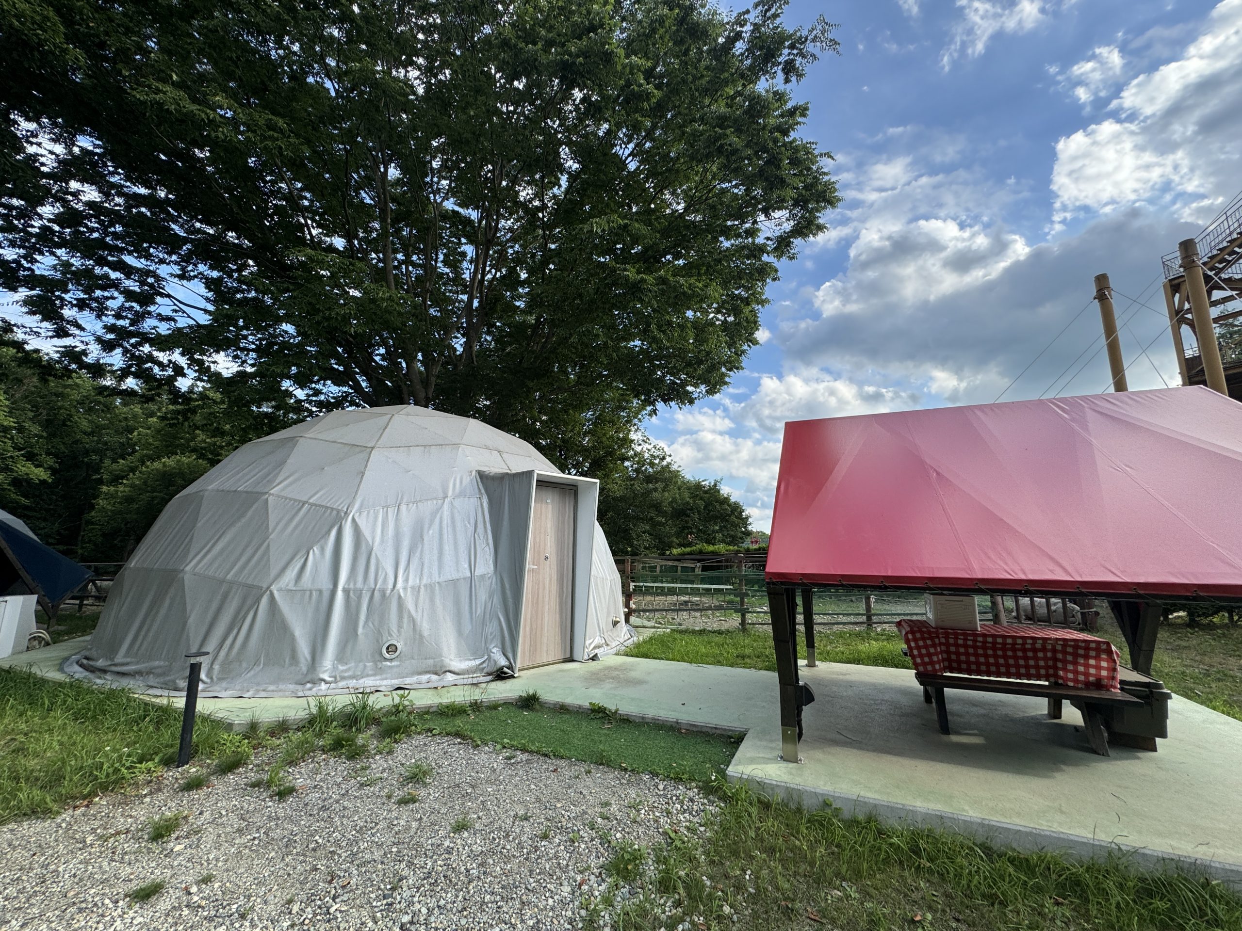 動物園的なテーマパークの中に泊まれるグランピングとしても、素晴らしい体験です。