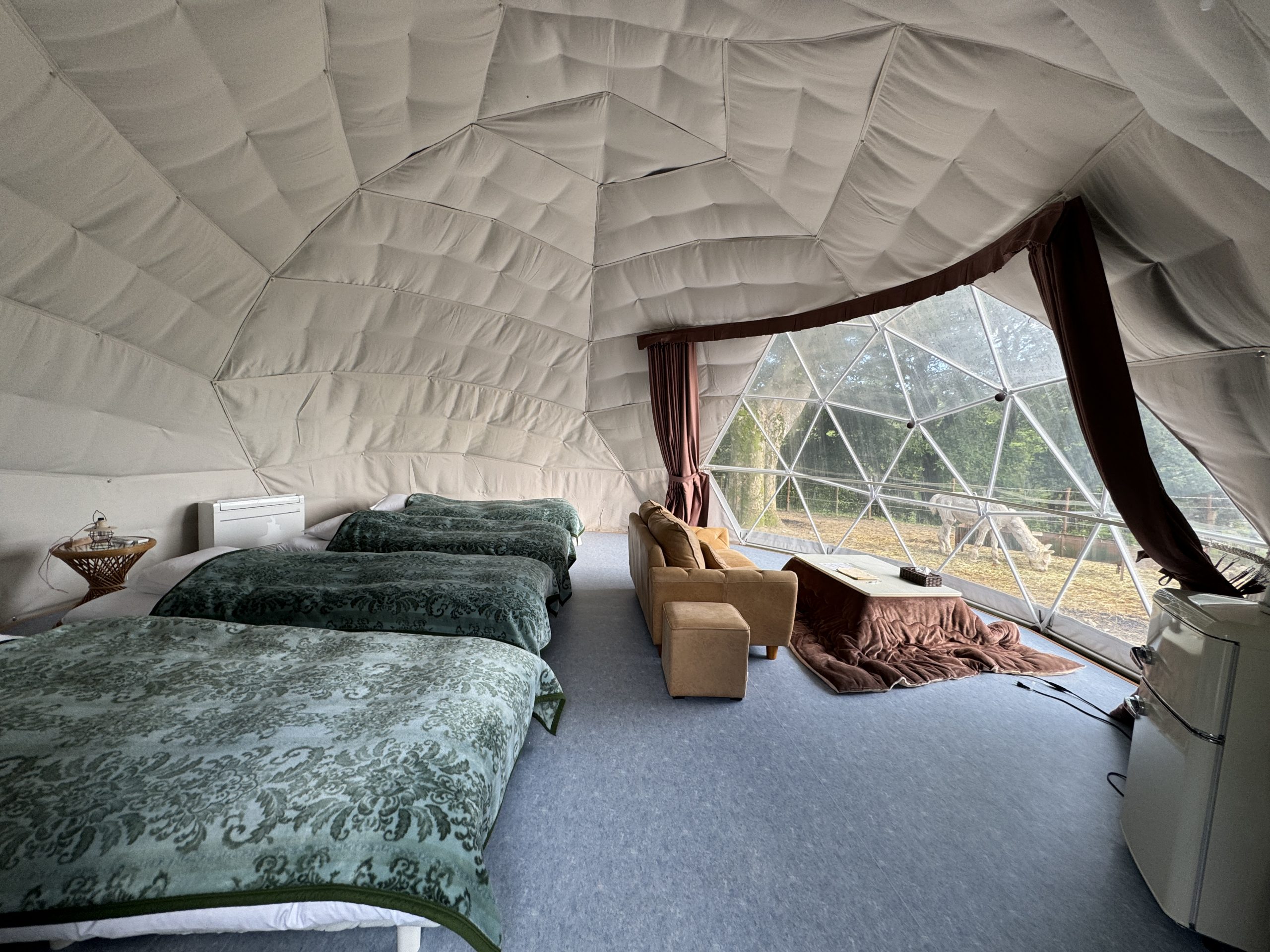 グランピングのテントの中は、かなり広いです。