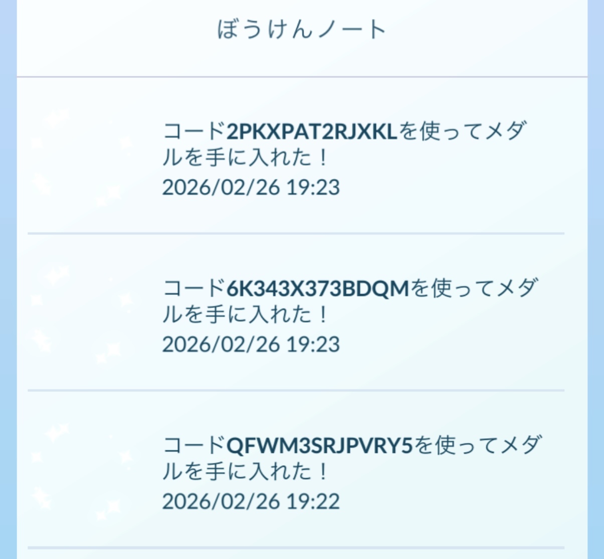 ▲コードの引き換えに成功したかは、ぼうけんノートから確認可能。
