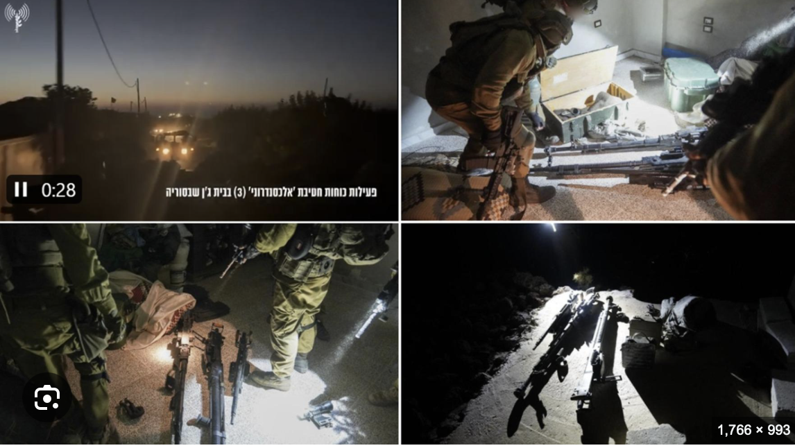 イスラエルはその軍事力をシリア、ゴラン高原間にある「緩衝地帯」へと動かし、そしてそれはイスラエル軍に非合法に占拠されたシリア領そのものなのである。イスラエルもまたヘルモン山を含む「緩衝地帯」の外側の地域を統制してきた。そしてイスラエルは夜通しの攻撃を含む軍事施設を繰り返し爆撃することを実施してきたのだ。