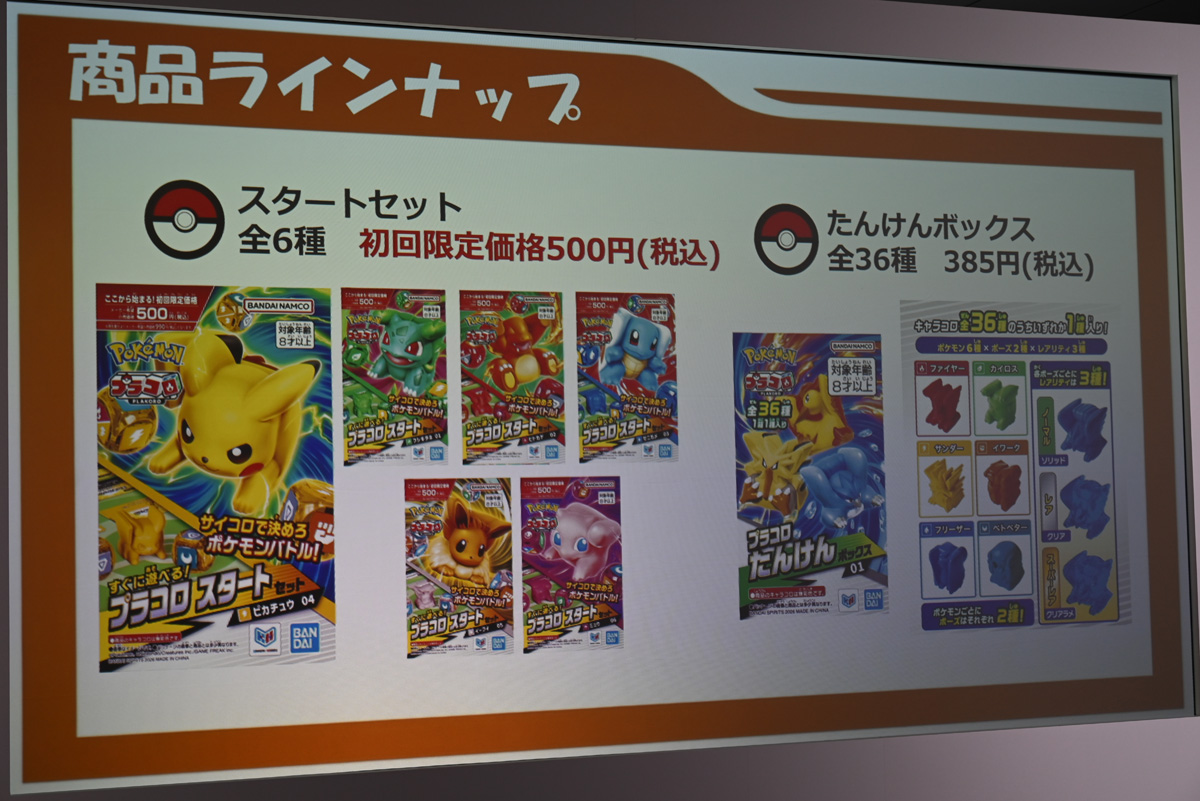 スタートセットはフシギダネ、ヒトカゲ、ゼニガメ、ピカチュウ、イーブイ、ミュウの全6種で、初回限定価格はなんと500円(通常価格990円)。7月にはランダム封入の「たんけんボックス」(各385円)、12月にはポケモンの進化が楽しめる「プラコロ進化セット」(各2,530円)も登場する。