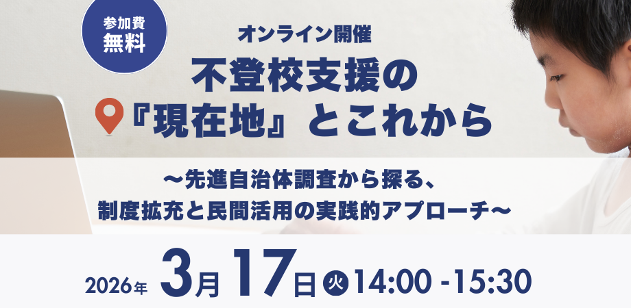 NPOが不登校支援行う14の自治体調査!行政・教育関係者向け報告会開催(オンライン)