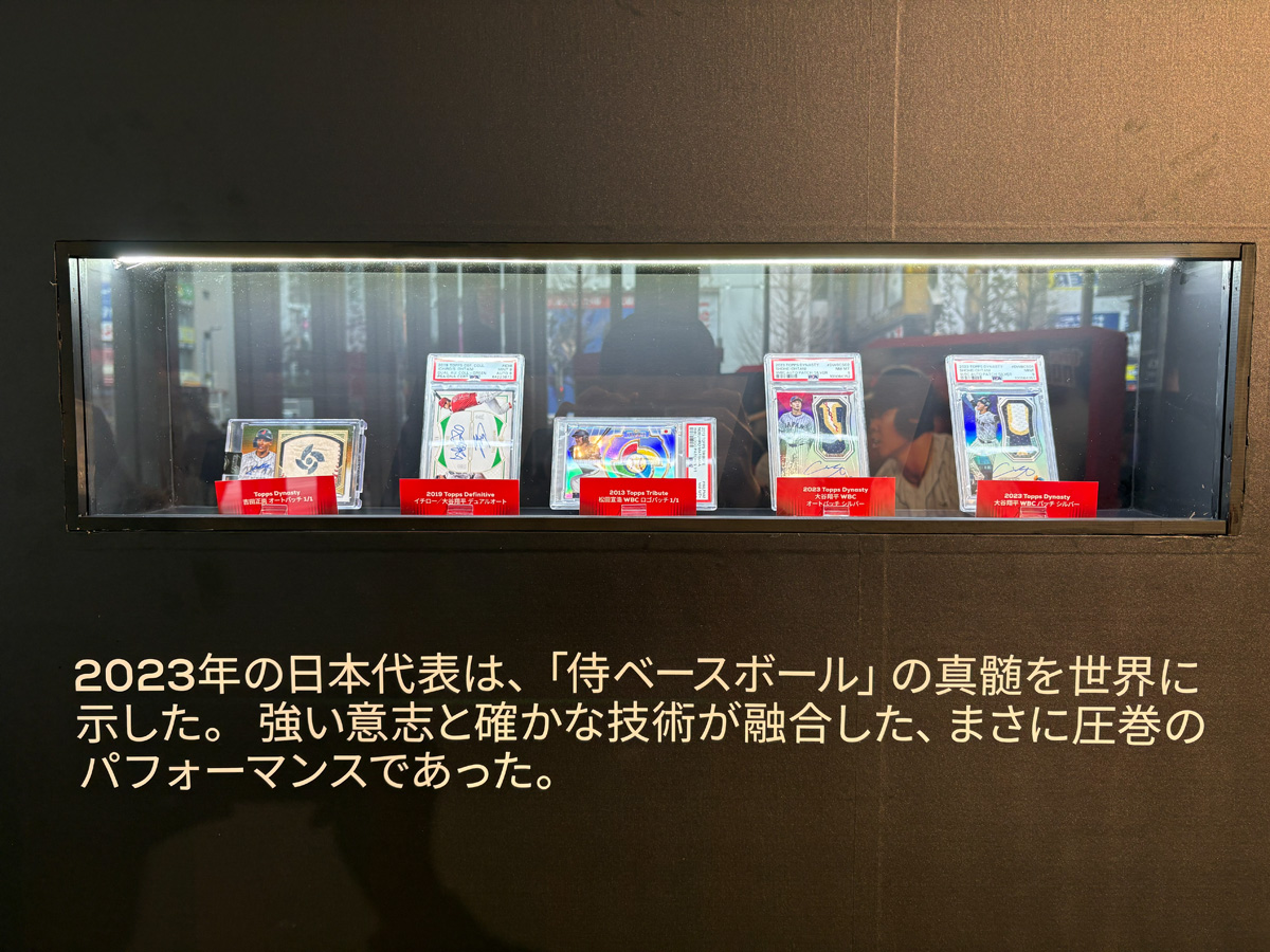 続いて足を進めると、「レガシーレーン」と名付けられた展示エリアへ。ここには2023年侍ジャパンの名場面を切り取ったカードがずらりと並んでいて、あの興奮が一気に蘇ってくる。