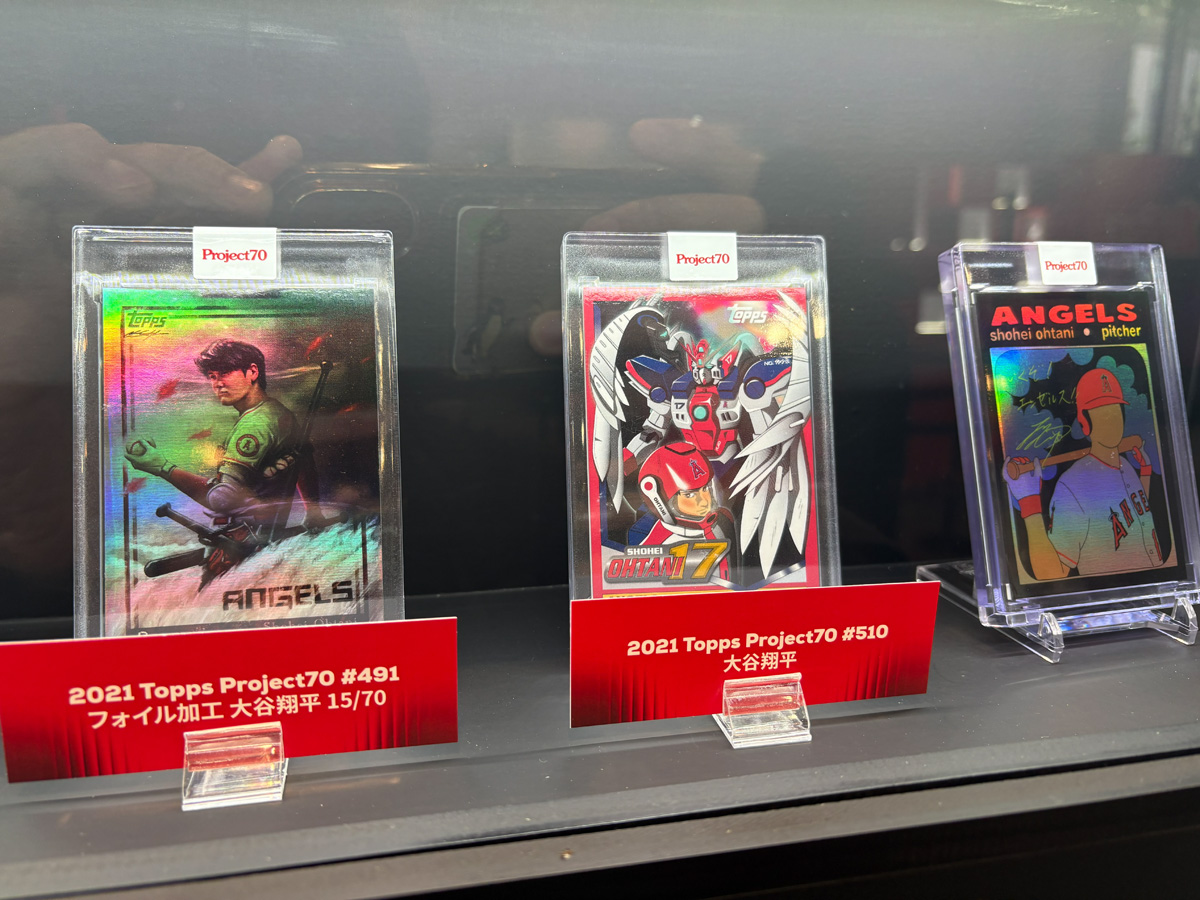 さらに「Project 70」と呼ばれるTopps創業70周年記念のコラボカードも展示されており、漫画風にアレンジされたデザインなど、アートとしてのトレカの側面も垣間見えた。