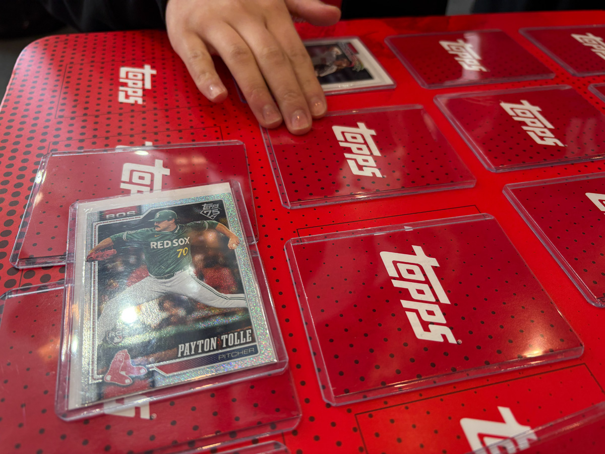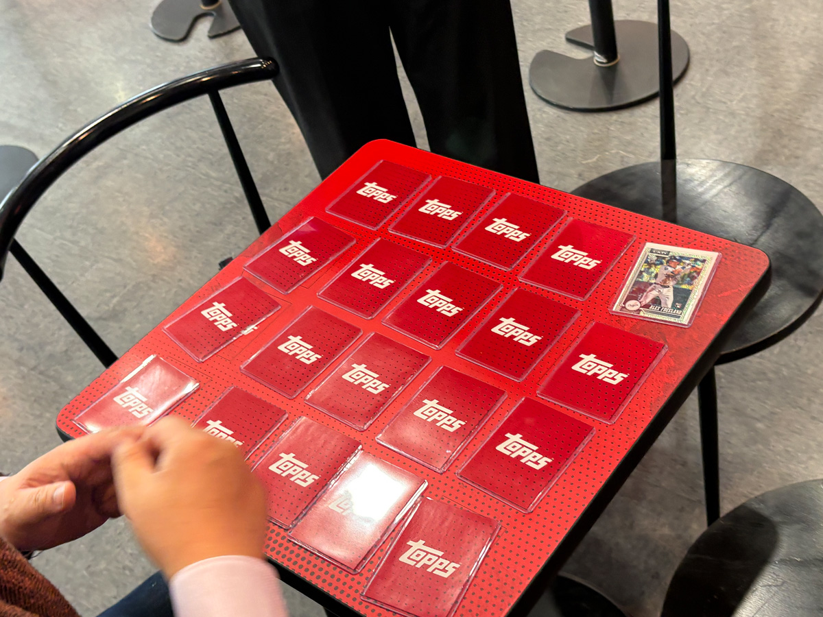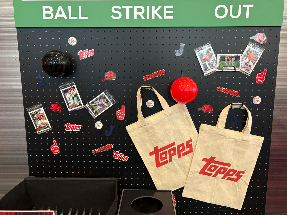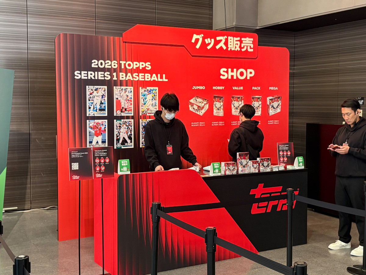 物販エリアにはグローバルで人気の高い「2026 Topps Baseball Series 1」が並び、ガチャマシンやグッズ販売も展開。テーブルコーナーでは実際にカードを手に取って、レアリティの見分け方や楽しみ方を学べる場も設けられている。トレカ初心者にもやさしい導線がしっかり整っていて、「ここから沼にハマる人、絶対いるな……」と思わずにはいられなかった。