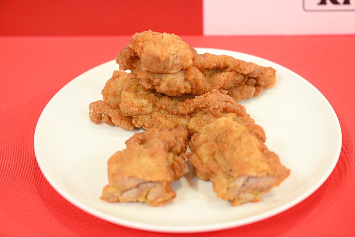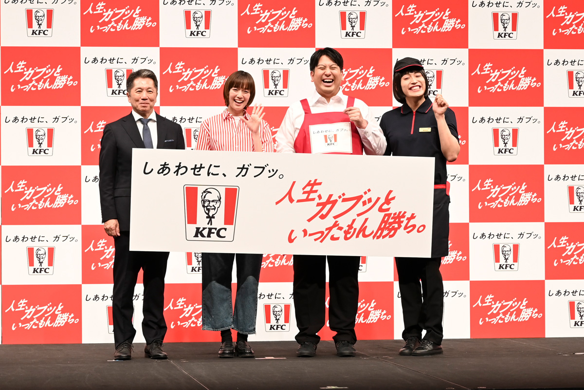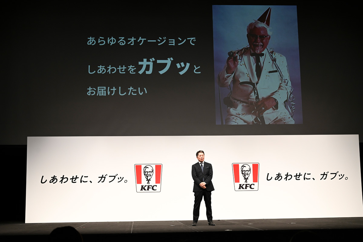 発表会では、新タグライン「しあわせに、ガブッ。」も発表された。チキンにかじりついた瞬間の幸福感を表現したもので、遠藤社長は「手が汚れるのも気にせず、夢中で止まらなくなるあの感じ。やっぱりこれだよねって言いたくなる瞬間を届けたい」といった趣旨のことを語った