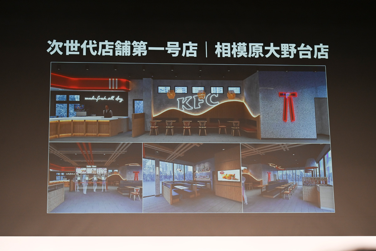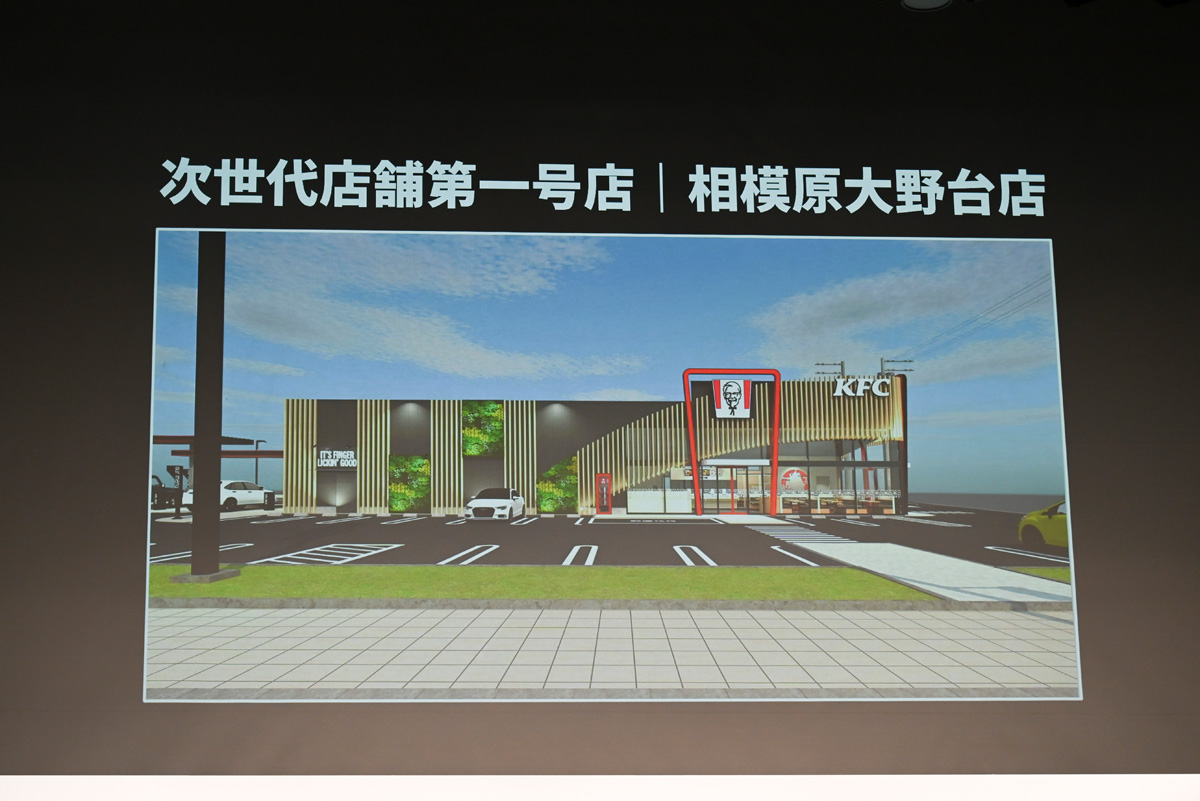発表会で個人的にもっとも熱かった情報がこれ。KFCの「次世代モデル店舗」第1号が、2026年4月3日に神奈川県相模原市の相模原大野台にオープンする。