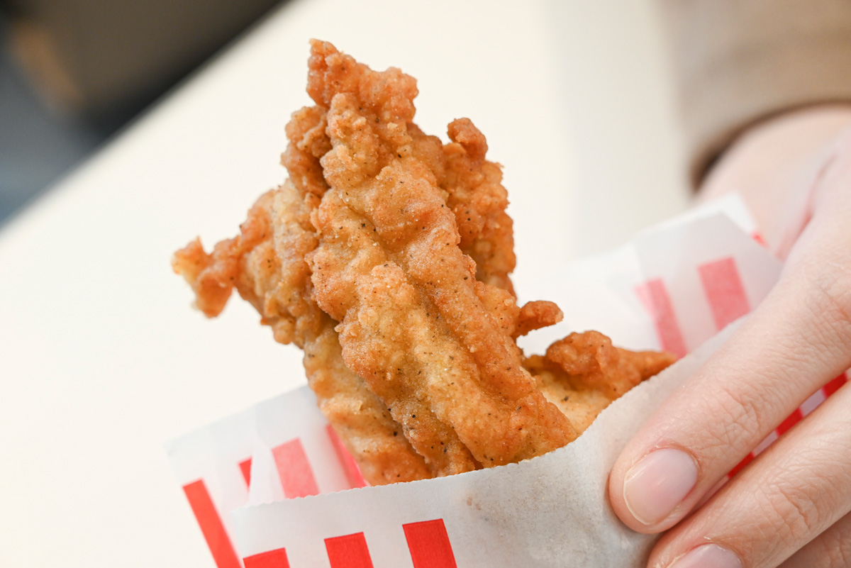 あの11種類のハーブ&スパイスによる独特の風味が、一口かじった瞬間にふわっと広がる。しかもオリジナルチキンと同じ圧力調理を採用しているとのことで、中の肉はしっとりジューシー。手を汚さずに食べられるスタイルでありながら、味わいに一切の妥協がない。