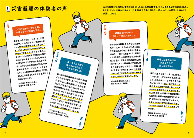 避難経験での学びは「仕分け」するという、東日本大震災で避難生活を送った人たちの体験談など、4人のケースを掲載。