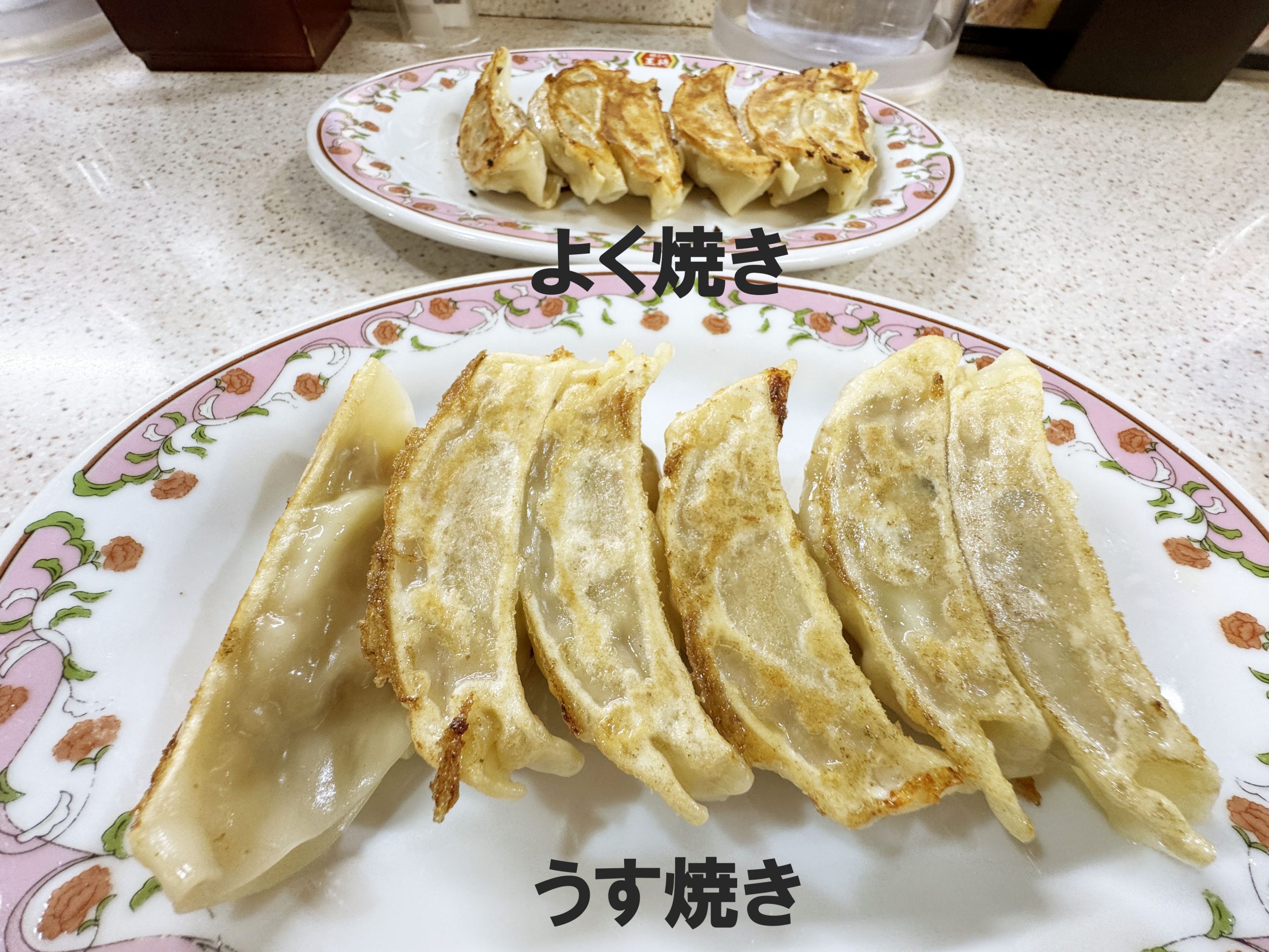 ちなみに「よく焼き」の場合、店舗や料理人によって、焼き加減にブレが生じることがあります。ブレとはいえ、ネガティヴなものではなく、カリカリでクリスピーで薫り高い餃子が楽しめることに違いはありません。筆者の場合「焼きすぎて餃子がコゲコゲ」ということは今まで一度もありませんでした。
