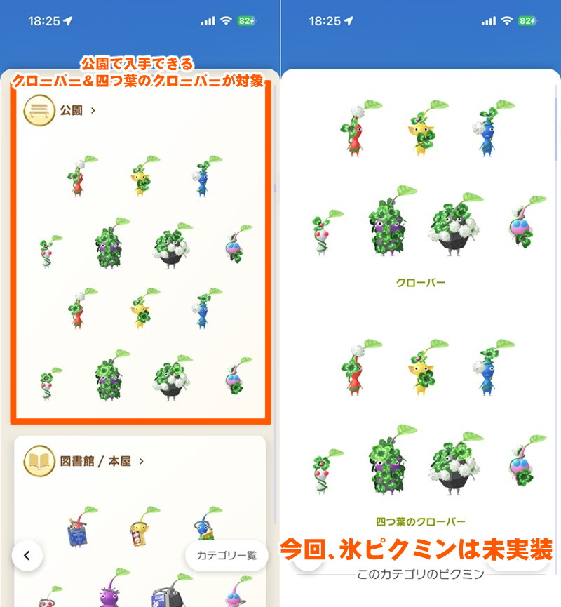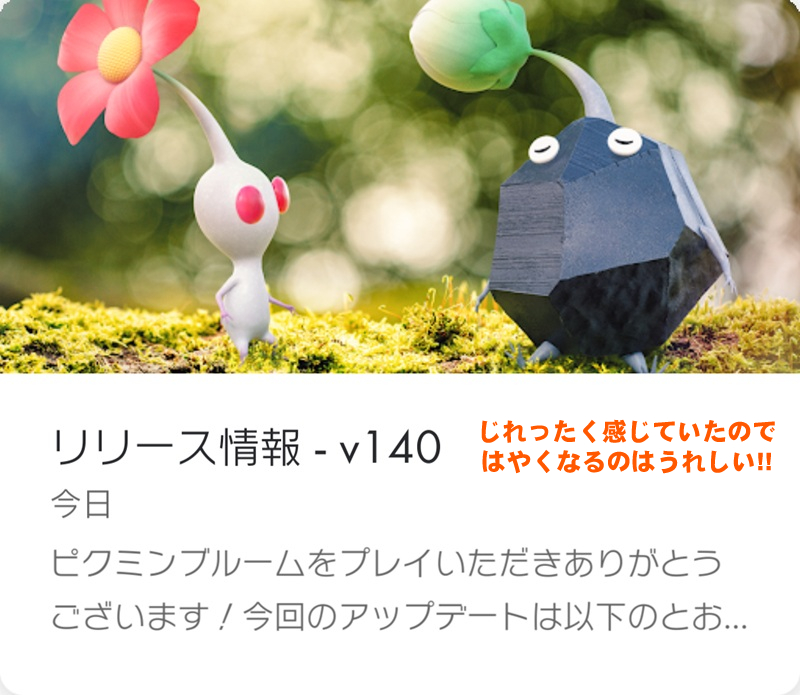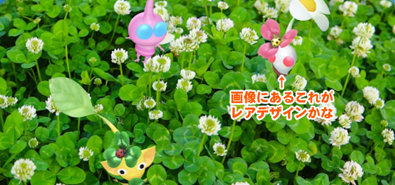 アナウンスにある画像から白ピクミンのクローバーがピンク色に、そしてテントウムシが黄色く変化していることが確認できる。