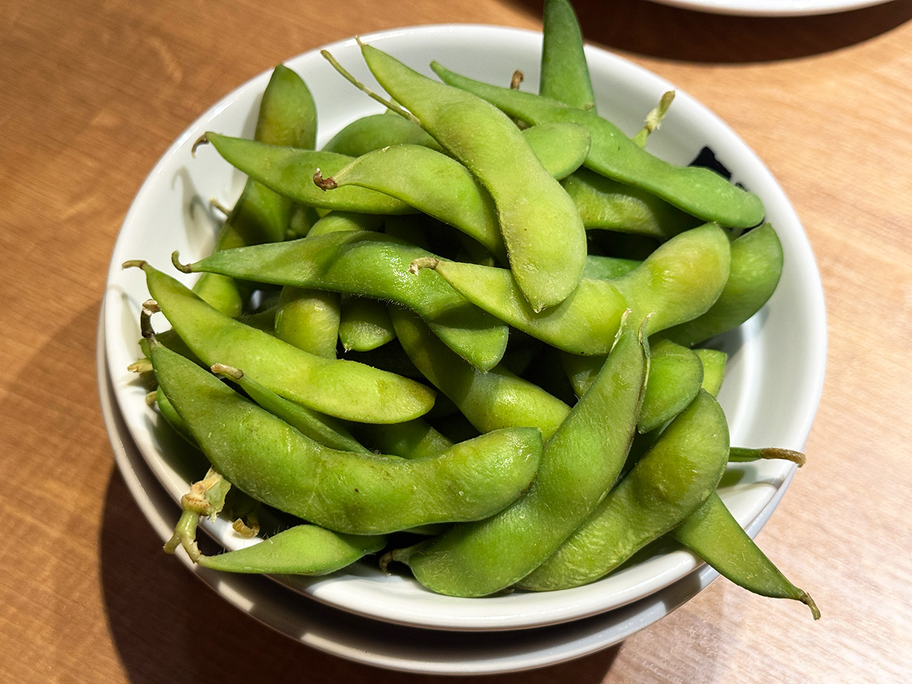 まずこちらが「無限枝豆」。2人分だからかもしれませんが、かなり多めの盛りになっています。おかわりしないで済む人が多そう。