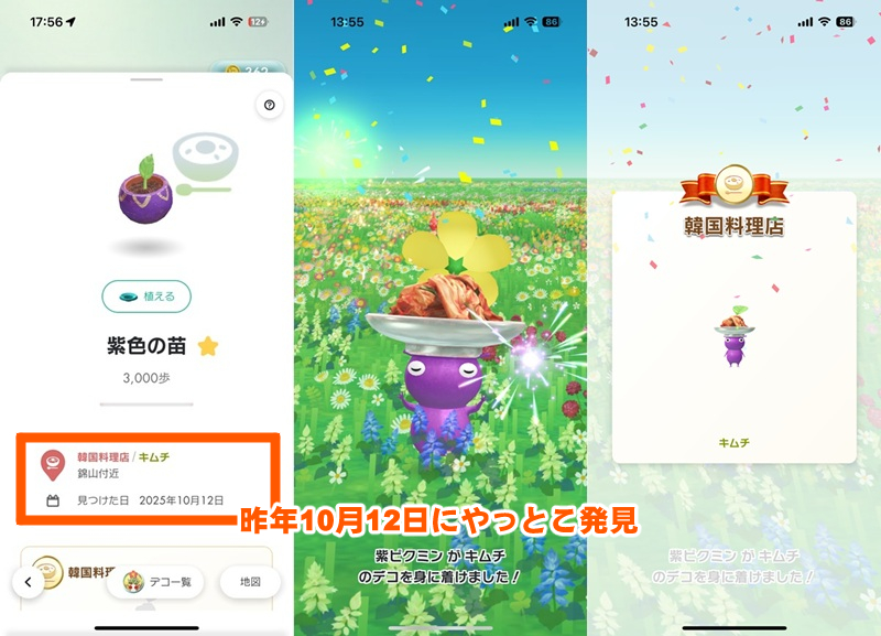 韓国料理店付近が新たなスポットに加わり、そこから「キムチ」を身に付けた紫デコピクミンが入手できるようになった。