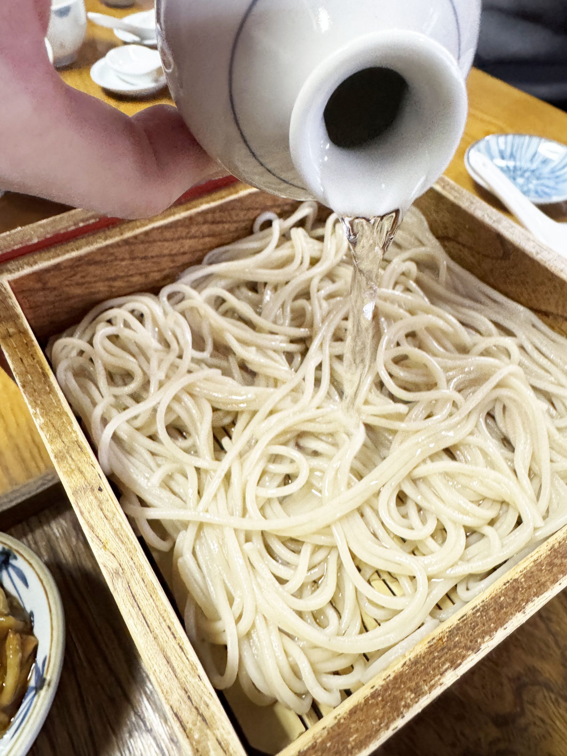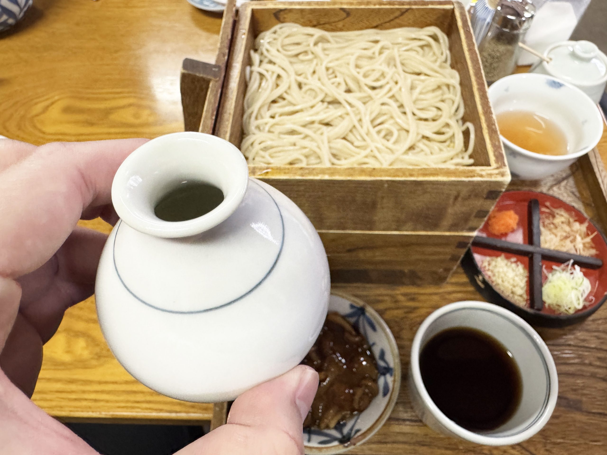 蕎麦と一緒に日本酒を飲む方は多いと思いますが、日本酒をかけて食べても美味しいのです。