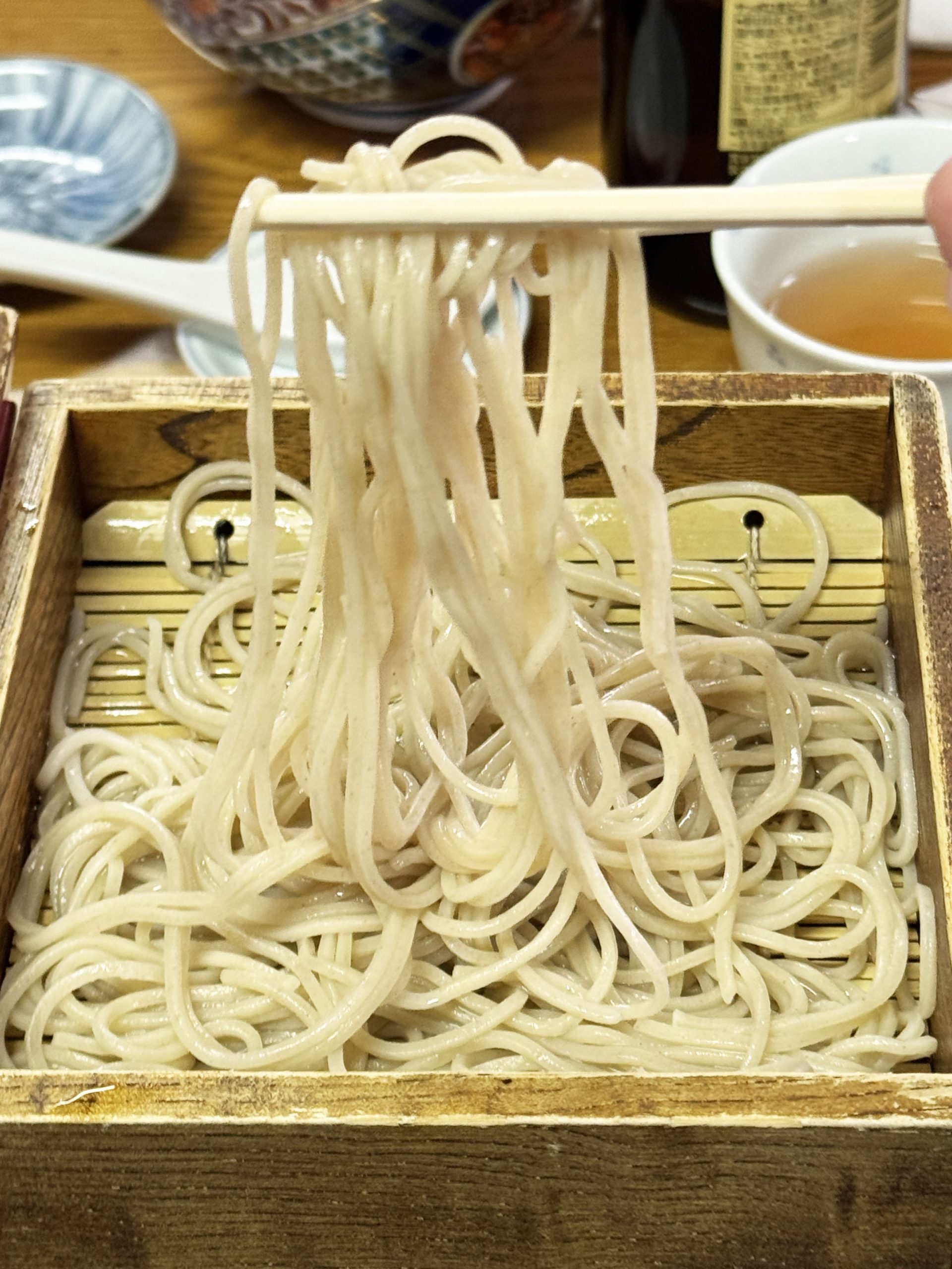 蕎麦を見てみると、かなり細い蕎麦であることがわかります。