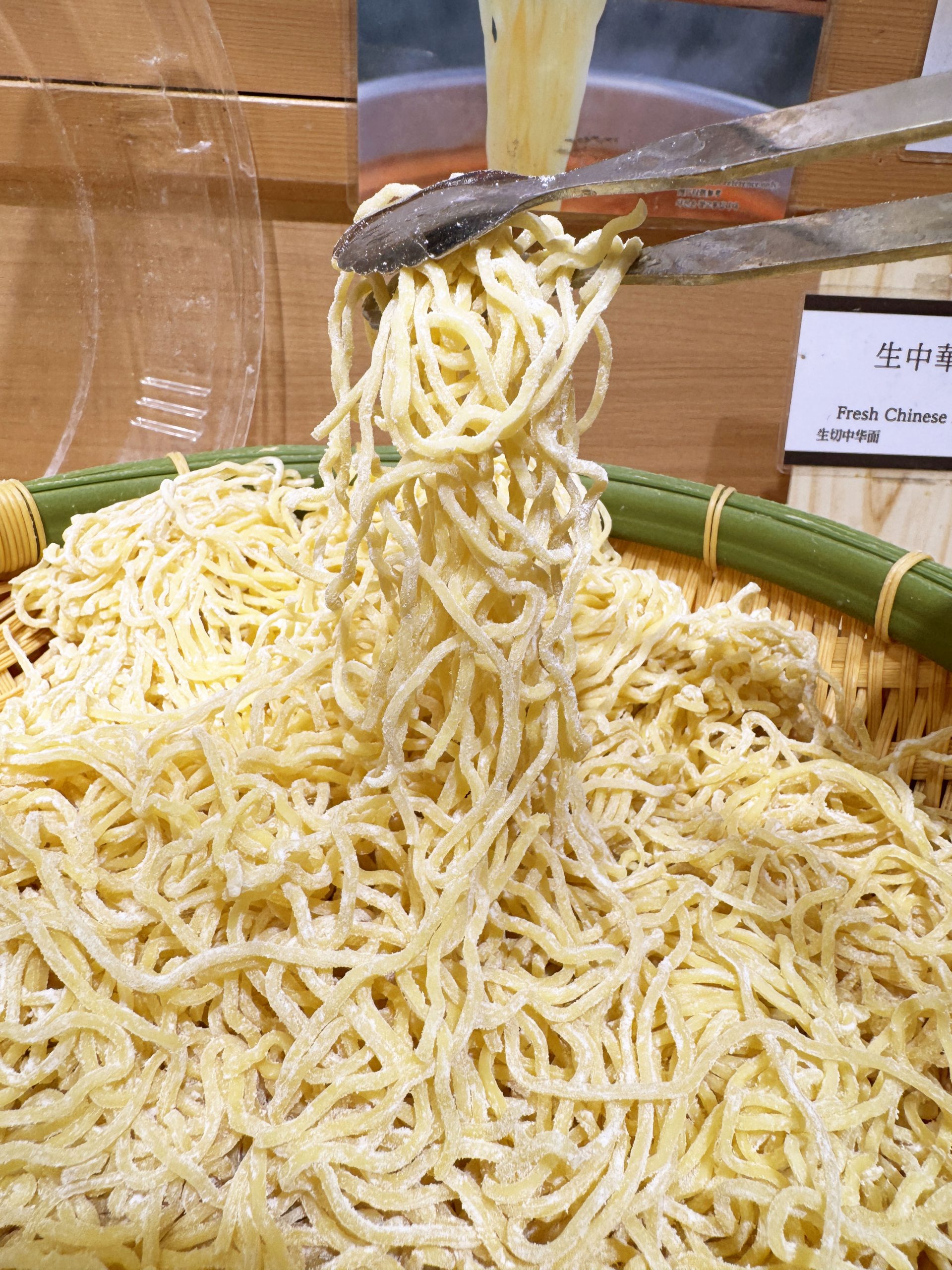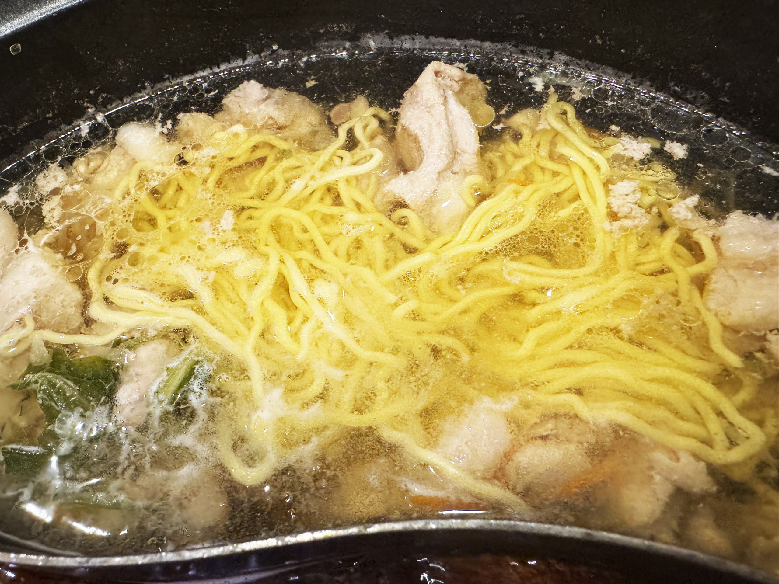 そんなしゃぶ葉では、うどん、中華麺、ワシワシ麺、春雨など、あらゆる麺が食べ放題。特に中華麺は「中華麺+出汁スープ+調味料」の組み合わせで美味しいラーメンが作れるため、しゃぶ葉ファンのなかで絶大な支持を得ている食材である。