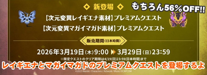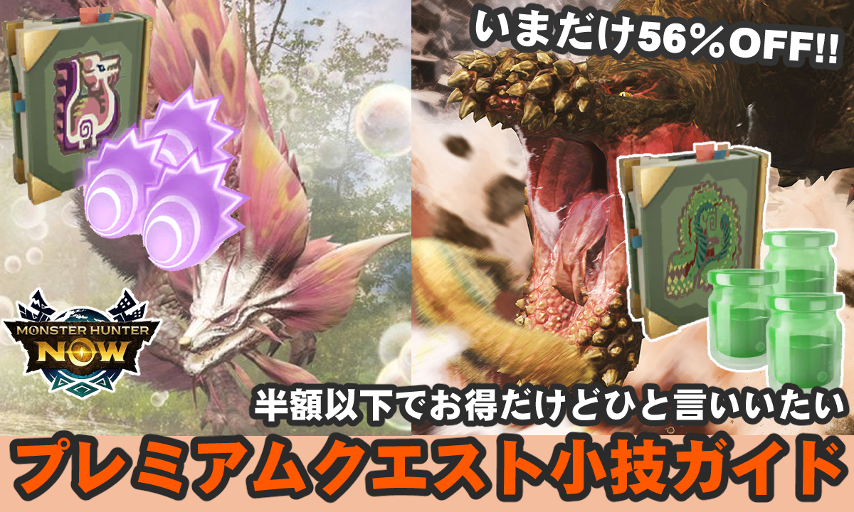 本記事では、2.5周年にちなんで販売されている人気のモンスター4頭を対象にしたプレミアムクエストが半額以下になっている件について。