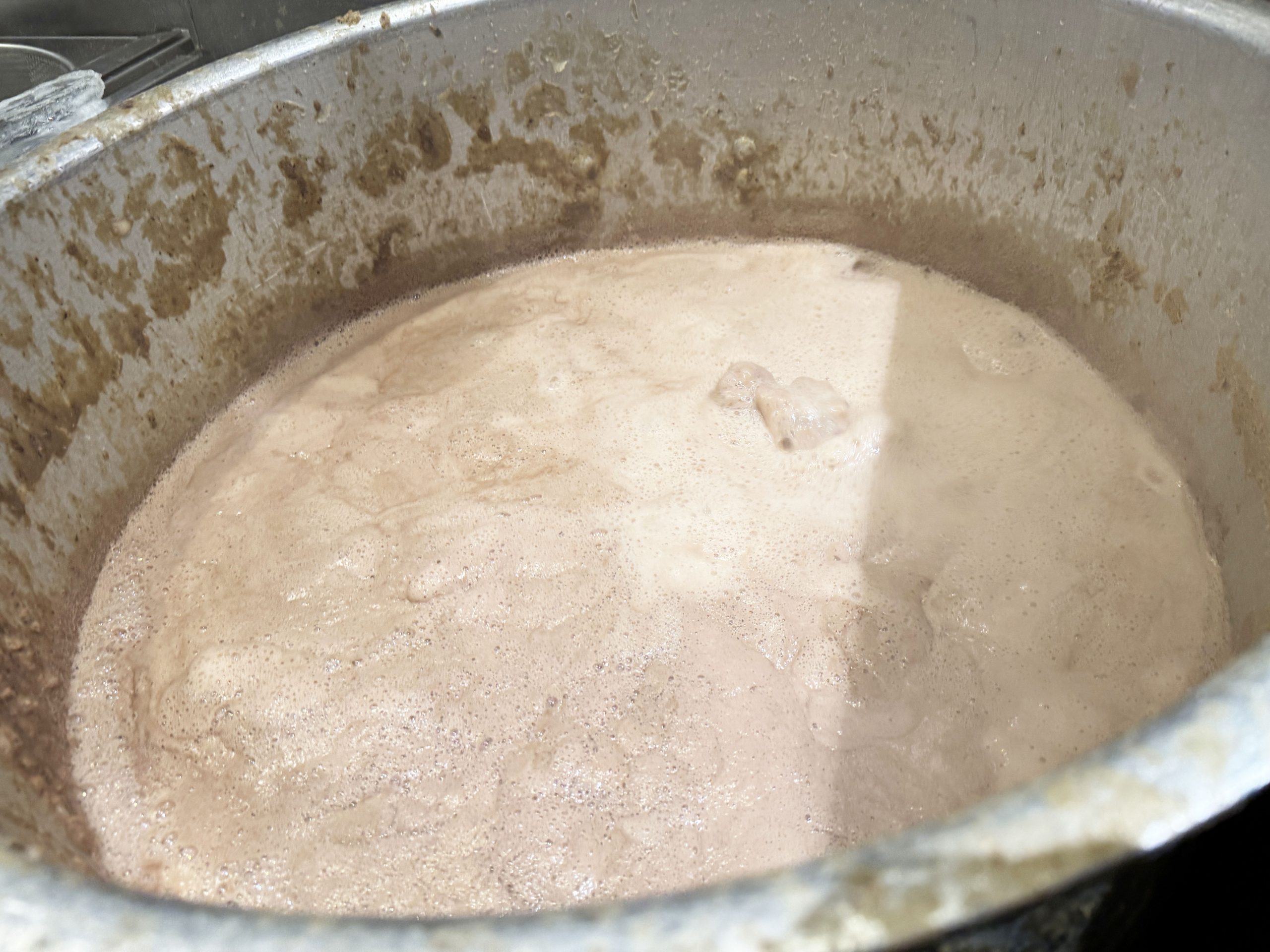 穀物を粉にしてひも状にした有機物 + 汁 = 混合汁