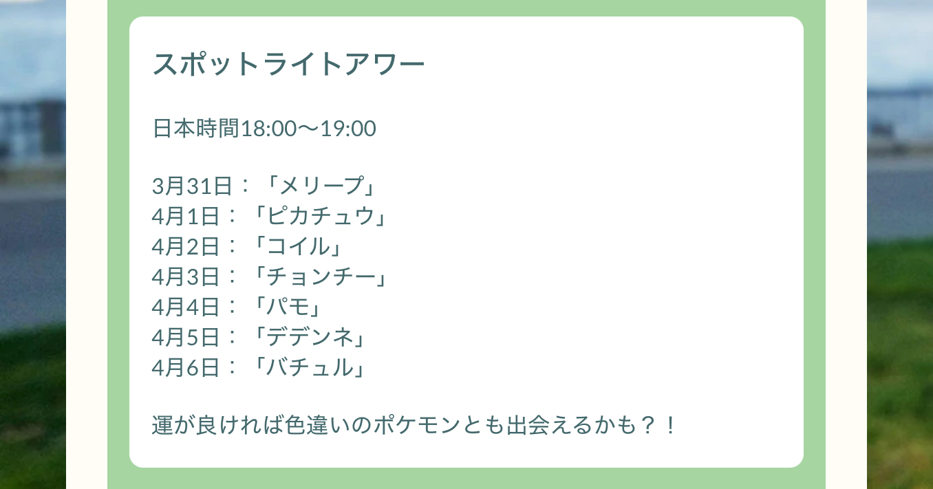 4月1日のピカチュウスポットライトアワーが気になる