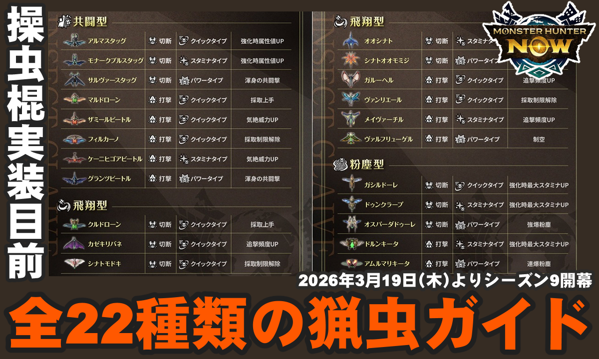 『モンハンNow』操虫棍全属性リスト解禁!! 各種素材対象モンスター&各猟虫の特性全まとめガイド