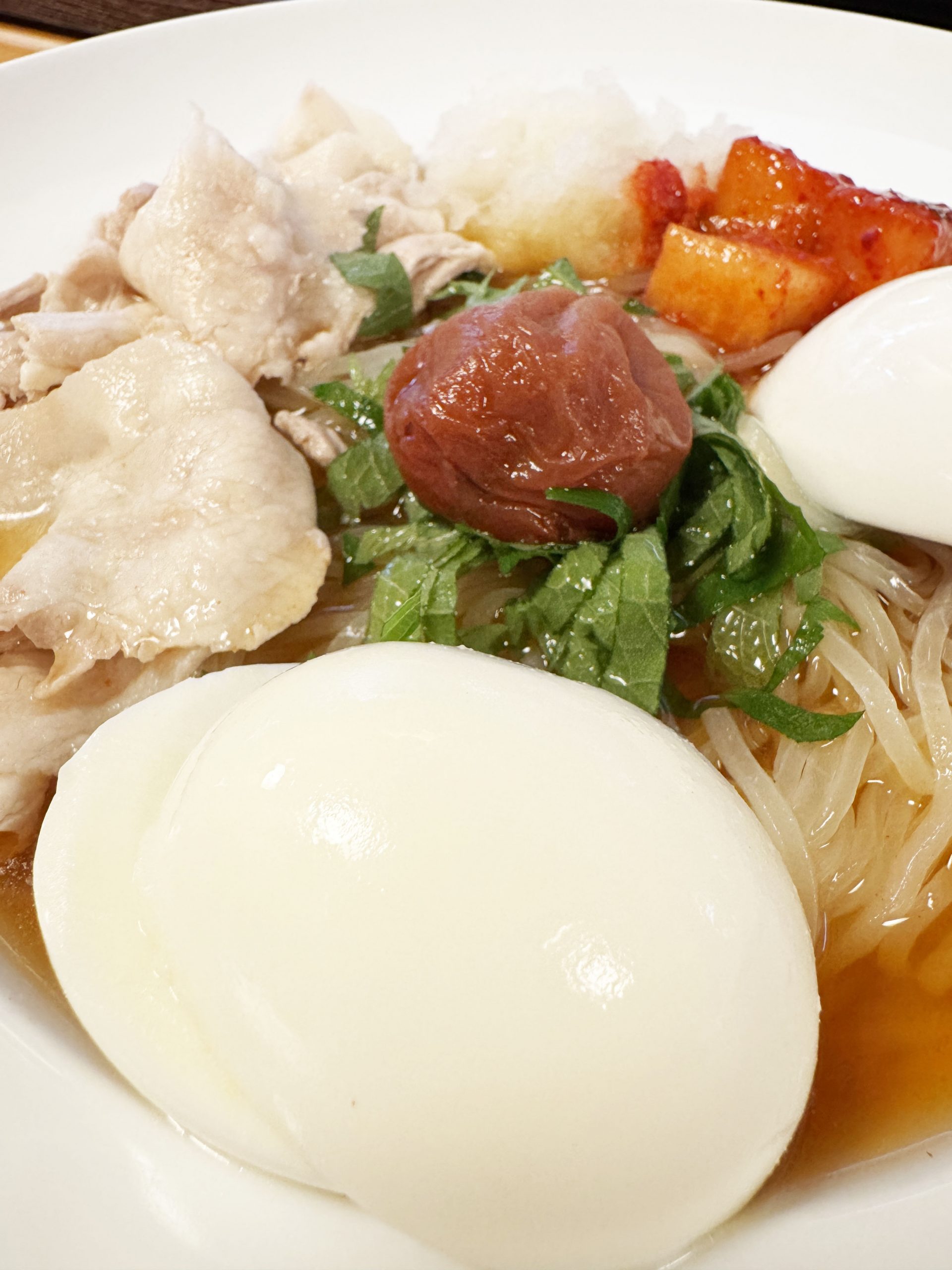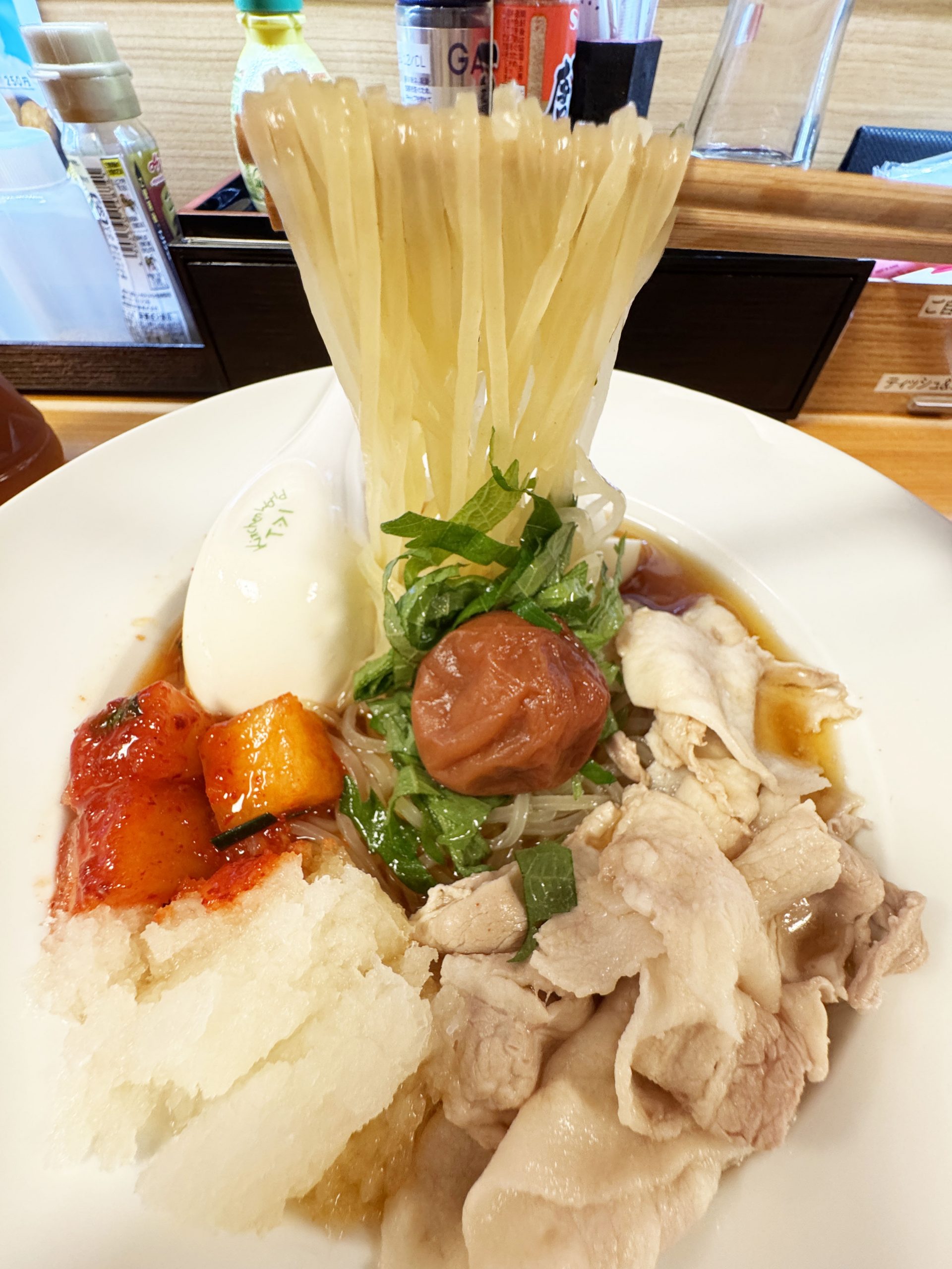 トッピングで生卵、キムチ、カクテキ、トマト、おいなりさん、梅しそなどを追加できる点も嬉しい。つまり、ガッツリと具マシマシの冷麺も食べられるのである。しかも、しっかり美味しい冷麺として。冷麺なので、こってりしていない点も素晴らしく、さわやかな食事をしたいときにもバッチリである。