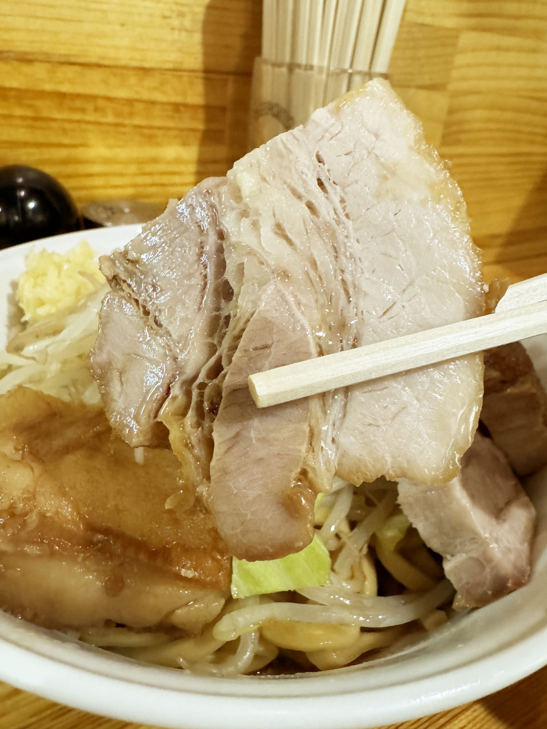 麺量は大盛りにしても、思ったより多くないので苦しまずにペロリといける量。そこに大量のチャーシューとほうれん草が投入され、濃くてキレのいい醤油スープをたっぷり吸い込ませる。そしてチャーシューからは脂がスープにあふれ出て、お互いの旨さを昇華。
