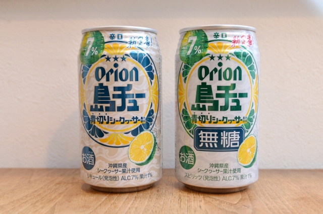 選び方は個人の嗜好によると思うので、沖縄つまみとのペアリングで考えてみました。「島チュー 無糖シークヮーサー」は、ゴーヤチャンプル、ポークたまご、ゆし豆腐など。「島チュー シークヮーサー」のほうは甘みがある料理向けで、ラフテー、タコライス、ジーマーミ豆腐、豆腐ようなどにはこっちのほうが合うと思います。香りだけでも南国気分に浸れるので、まずはお試しを!