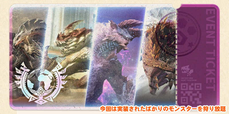 セルレギオス、オロミドロ、トビカガチ亜種、ジンオウガ(次元変異を含む)モンスターがピックアップされる時間帯も3度あるので、都合のいいタイミングでイベントに参加するといいだろう。